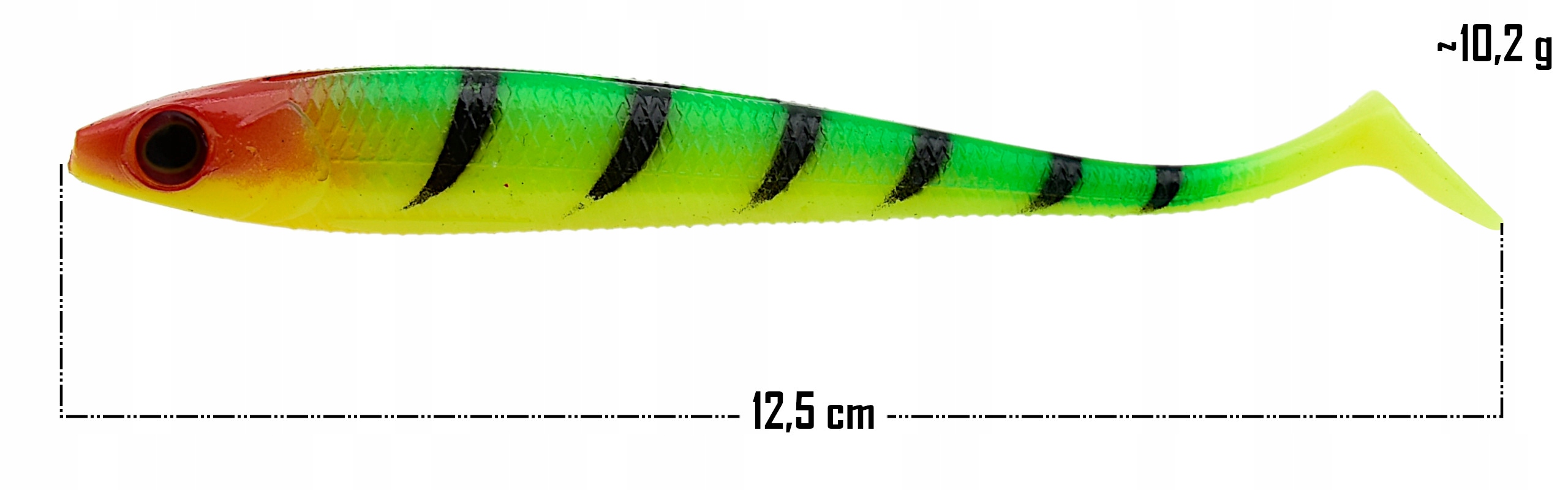 Dzięki miękkiej i elastycznej konstrukcji doskonale imituje ruchy małej rybki, a jej ogon generuje intensywną, kuszącą pracę.
