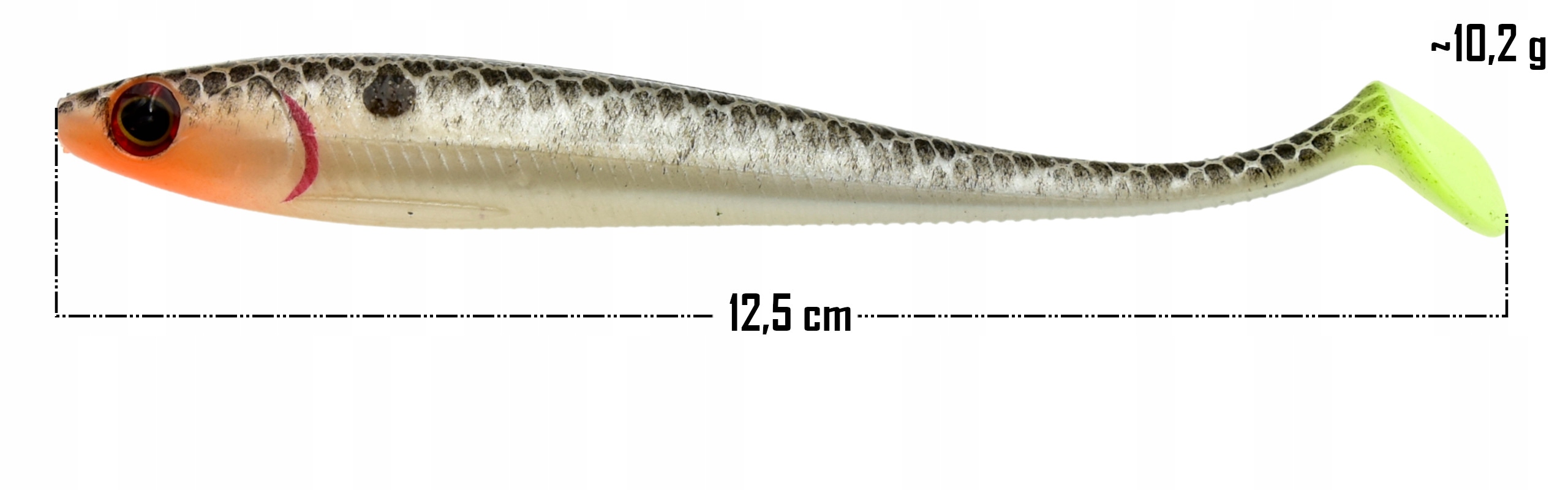 Dzięki miękkiej i elastycznej konstrukcji doskonale imituje ruchy małej rybki, a jej ogon generuje intensywną, kuszącą pracę.