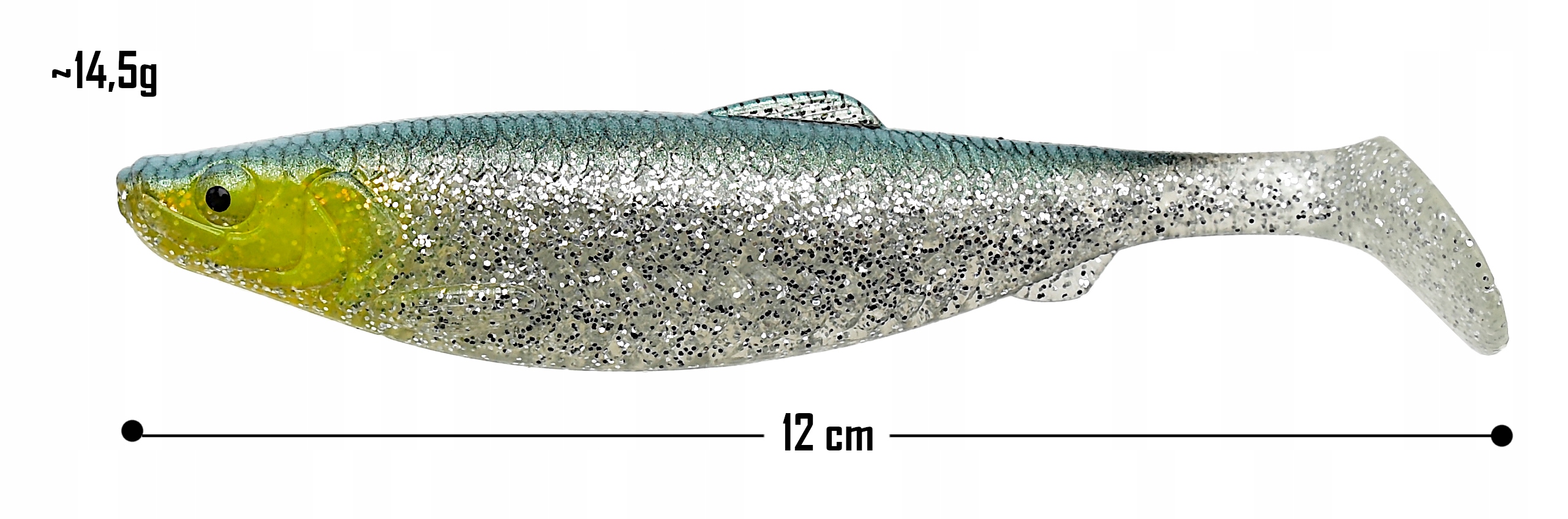Realistyczna gumowa przynęta wędkarska, wzorowana na kształcie i kolorystyce prawdziwej ryby, zaprojektowana z myślą o skutecznym łowieniu drapieżników. Dzięki naturalnym ruchom w wodzie oraz wyrazistym barwom, idealnie imituje prawdziwą zdobycz, co skutecznie prowokuje drapieżniki do ataku.