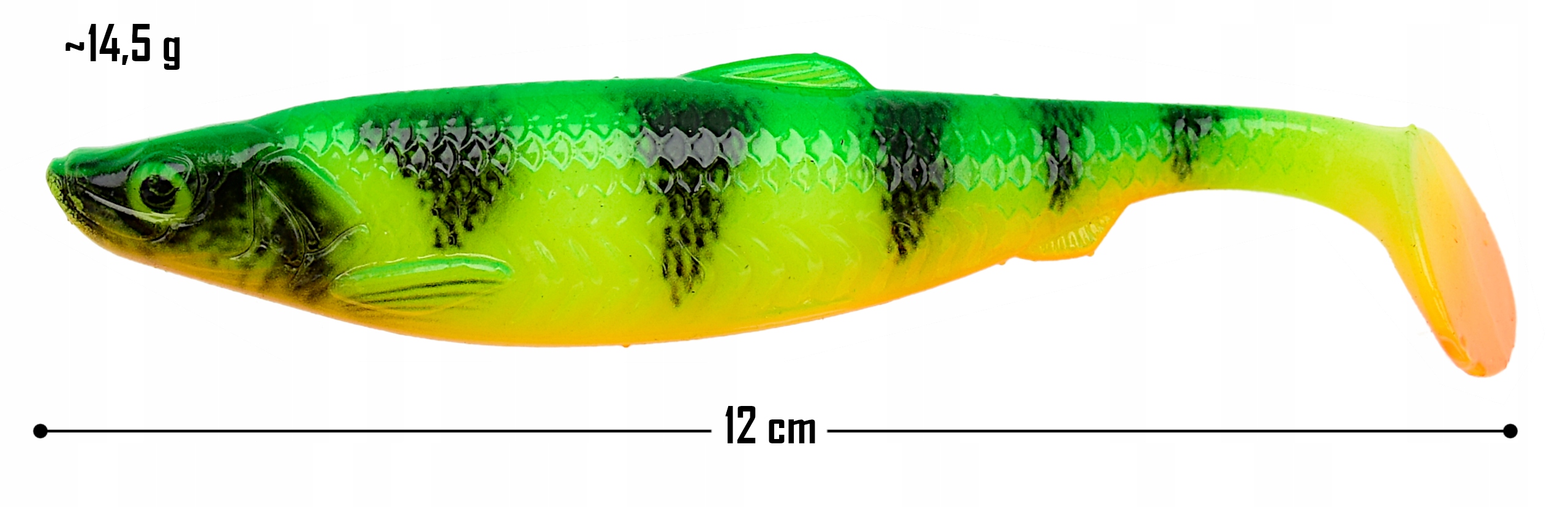 Realistyczna gumowa przynęta wędkarska, wzorowana na kształcie i kolorystyce prawdziwej ryby, zaprojektowana z myślą o skutecznym łowieniu drapieżników. Dzięki naturalnym ruchom w wodzie oraz wyrazistym barwom, idealnie imituje prawdziwą zdobycz, co skutecznie prowokuje drapieżniki do ataku.