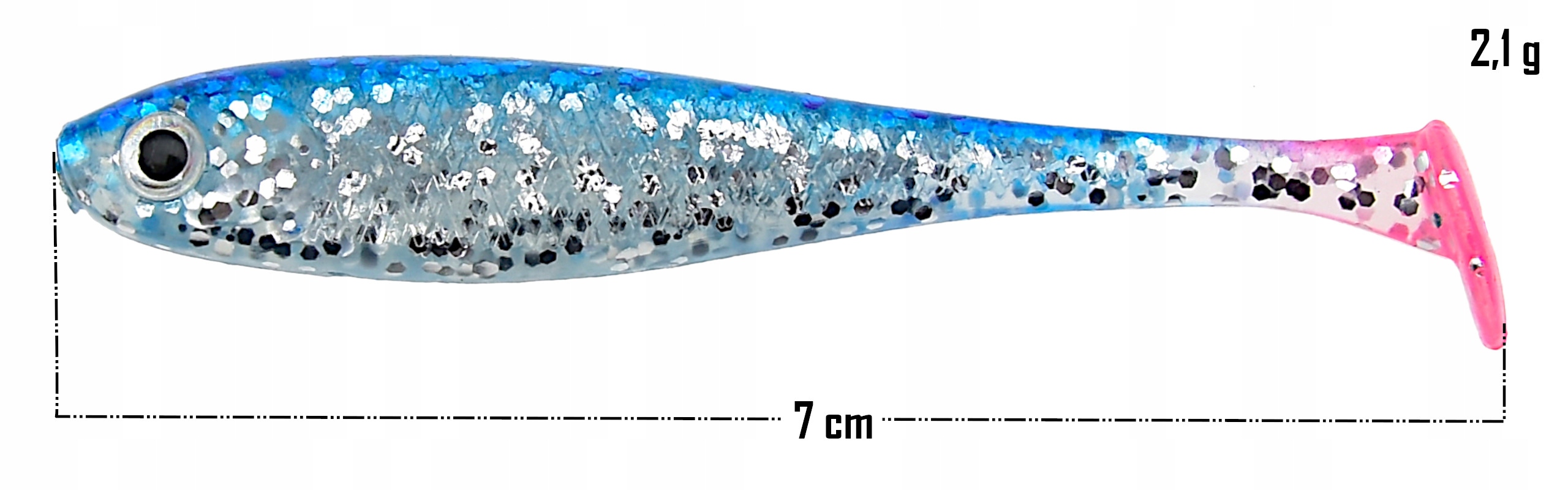 Dzięki miękkiej i elastycznej konstrukcji doskonale imituje ruchy małej rybki, a jej ogon generuje intensywną, kuszącą pracę.