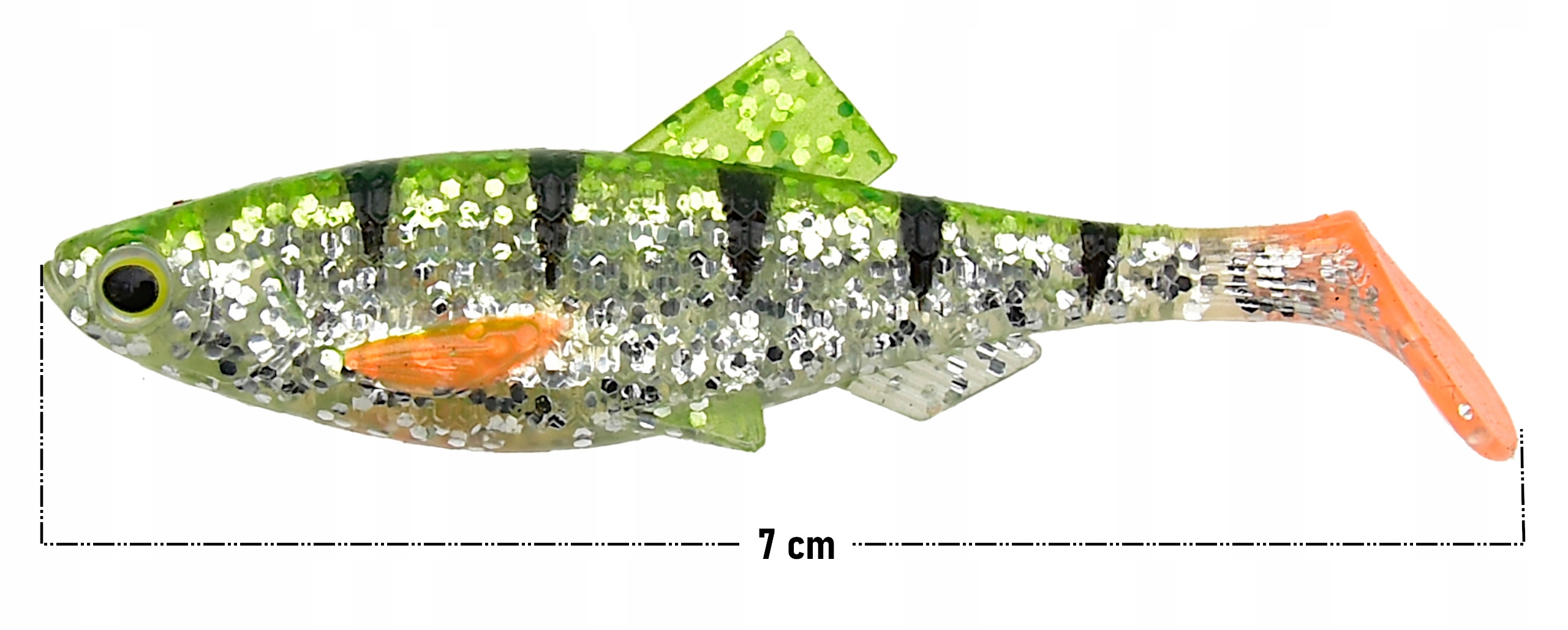 Dzięki miękkiej i elastycznej konstrukcji doskonale imituje ruchy małej rybki, a jej ogon generuje intensywną, kuszącą pracę.