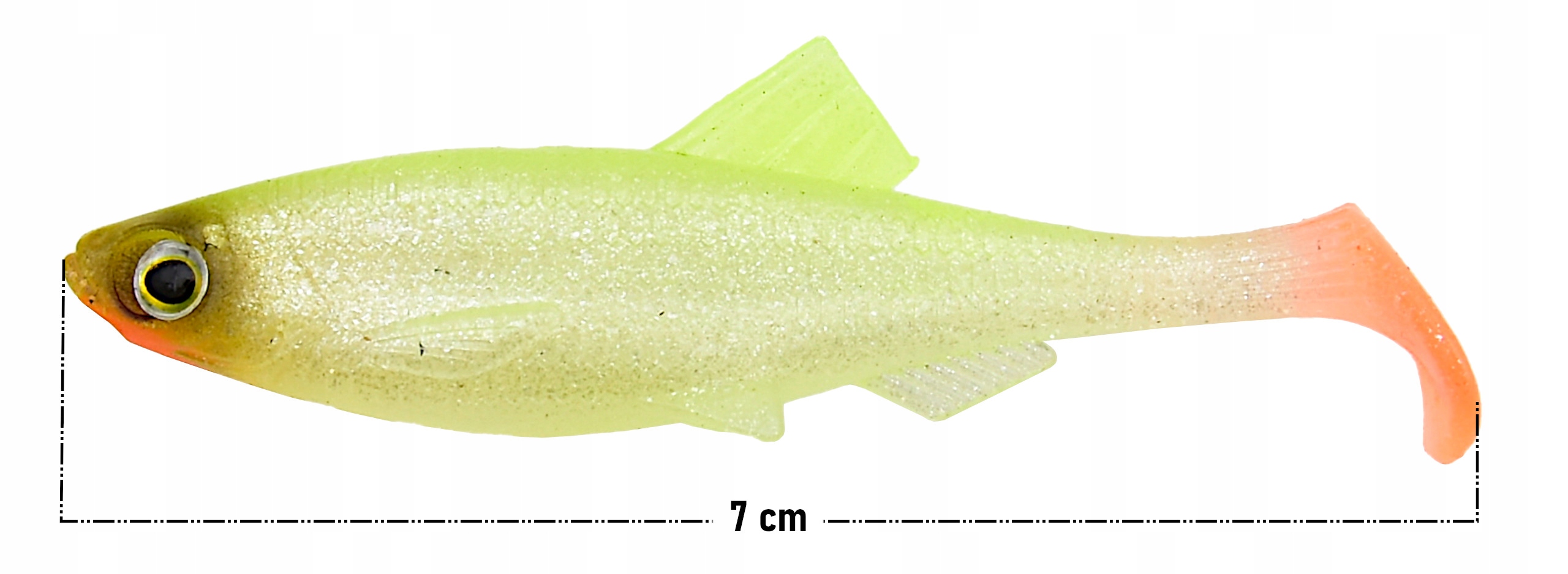 Dzięki miękkiej i elastycznej konstrukcji doskonale imituje ruchy małej rybki, a jej ogon generuje intensywną, kuszącą pracę.