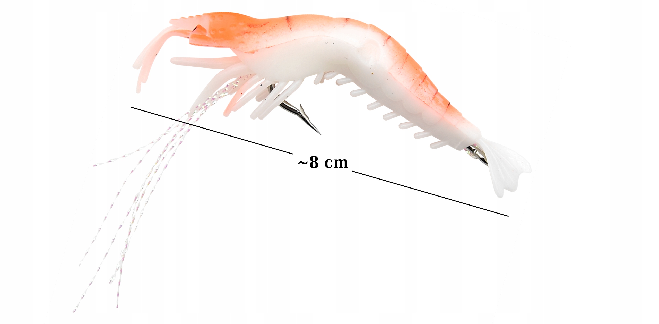 Niesamowicie miękka Krewetka o bardzo realistycznym wyglądzie, mierząca 8 cm i ważąca zaledwie 4,6 g jest uzbrojona w ostry haczyk.