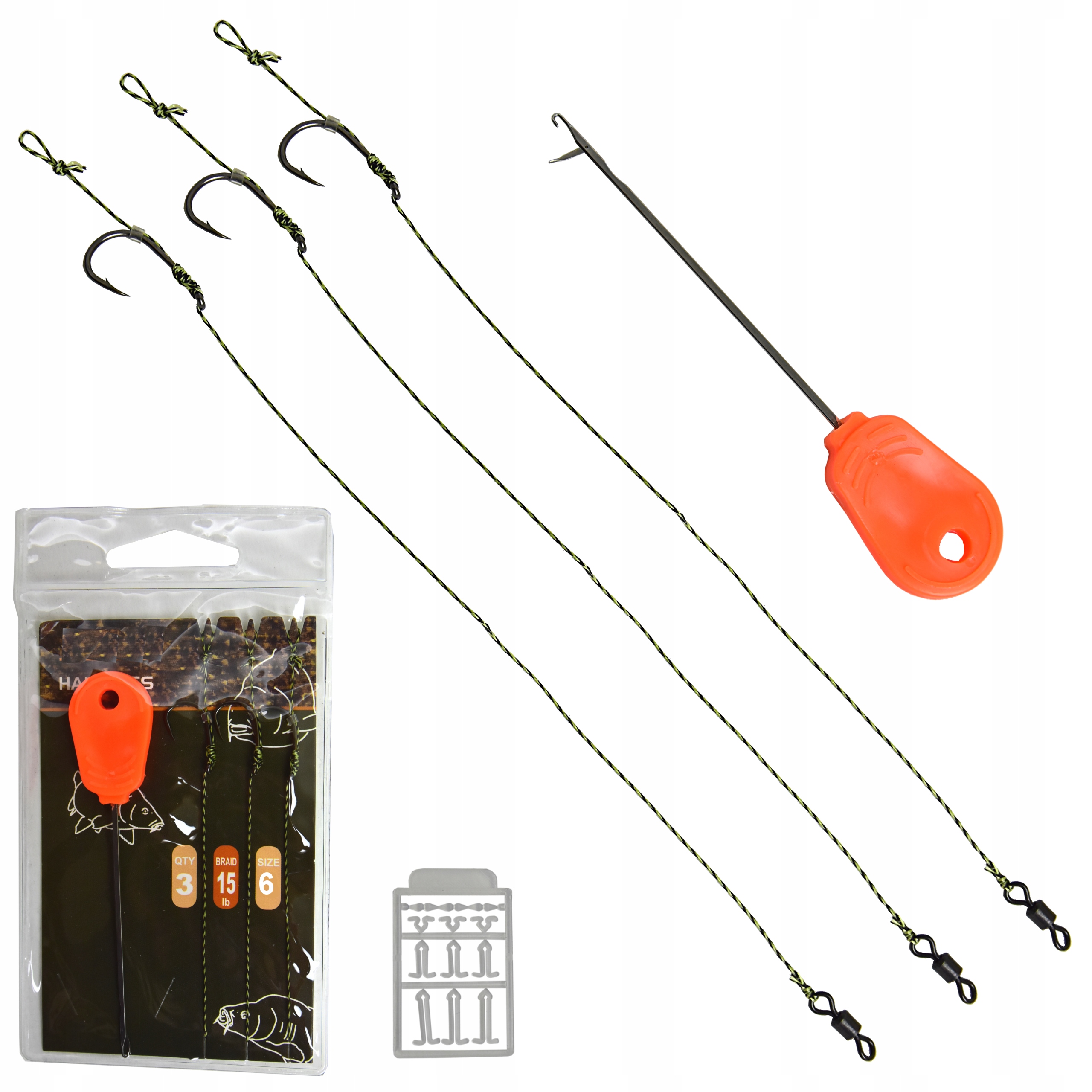 PRZYPON KARPIOWY Z WŁOSEM 3szt HAK 6 + igła stoper