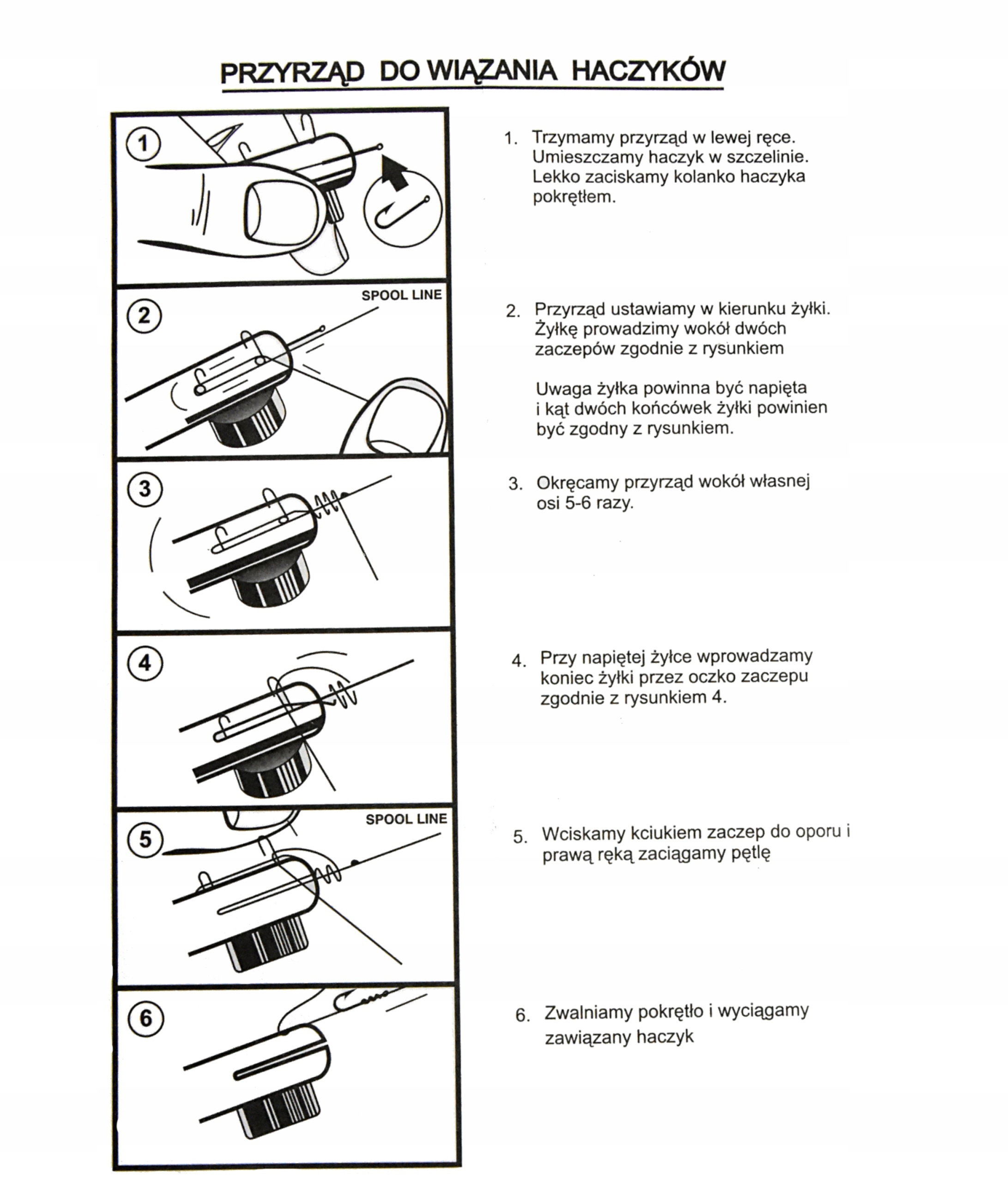 ✅ Metalowa wiązarka do haczyków z narzędziem do wiązania pętli, która pozwala na błyskawiczne przygotowanie mocnych i solidnych wiązań, nawet w trudnych warunkach.