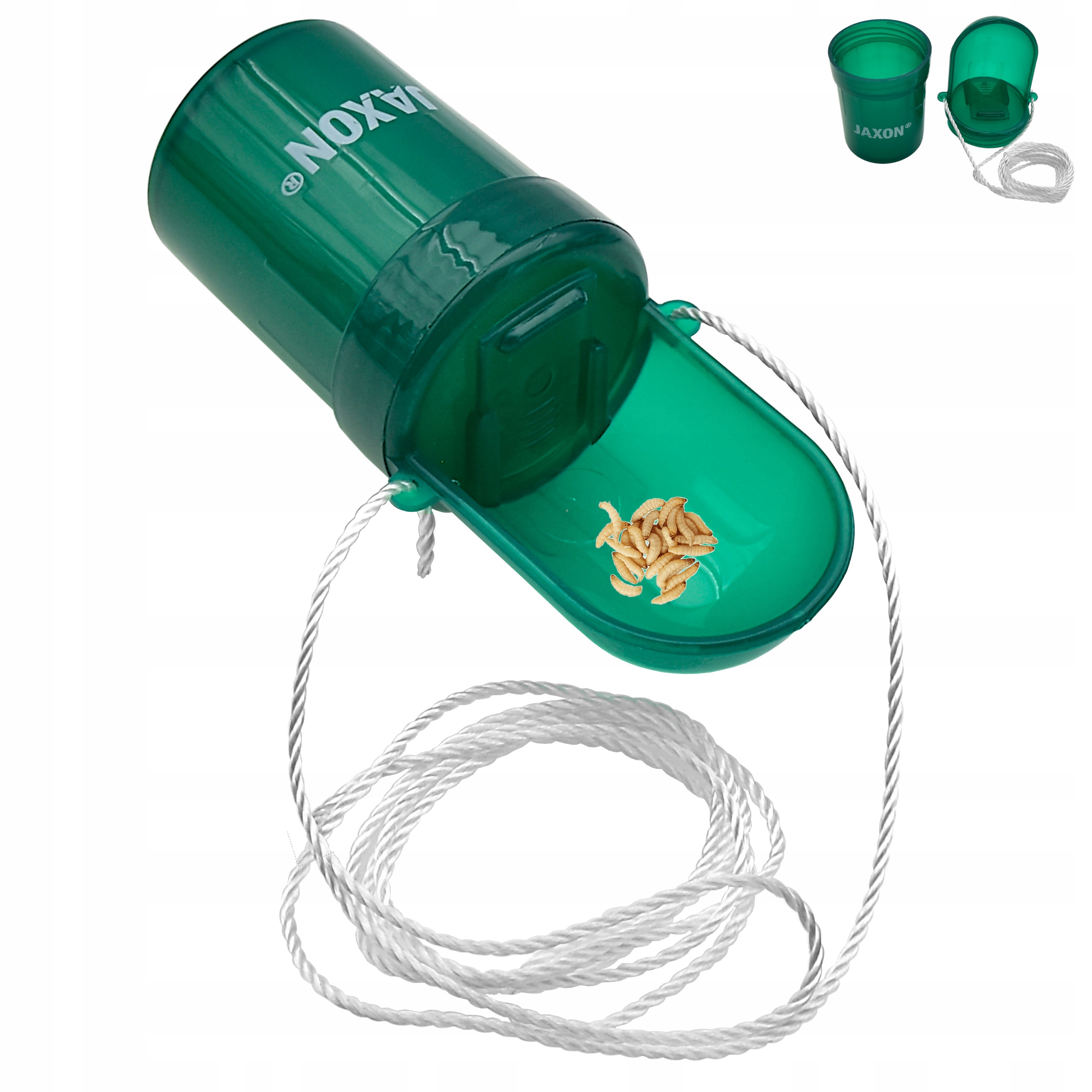 Pojemnik na robaki Jaxon z podajnikiem - wygodny na szyję i do torby!