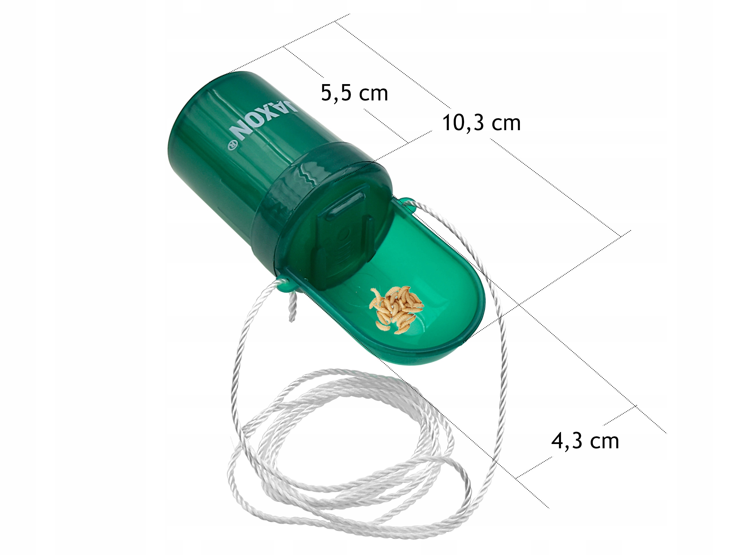 PUDEŁKO POJEMNIK NA ROBAKI z podajnikiem JAXON wygodny na szyję i do torby