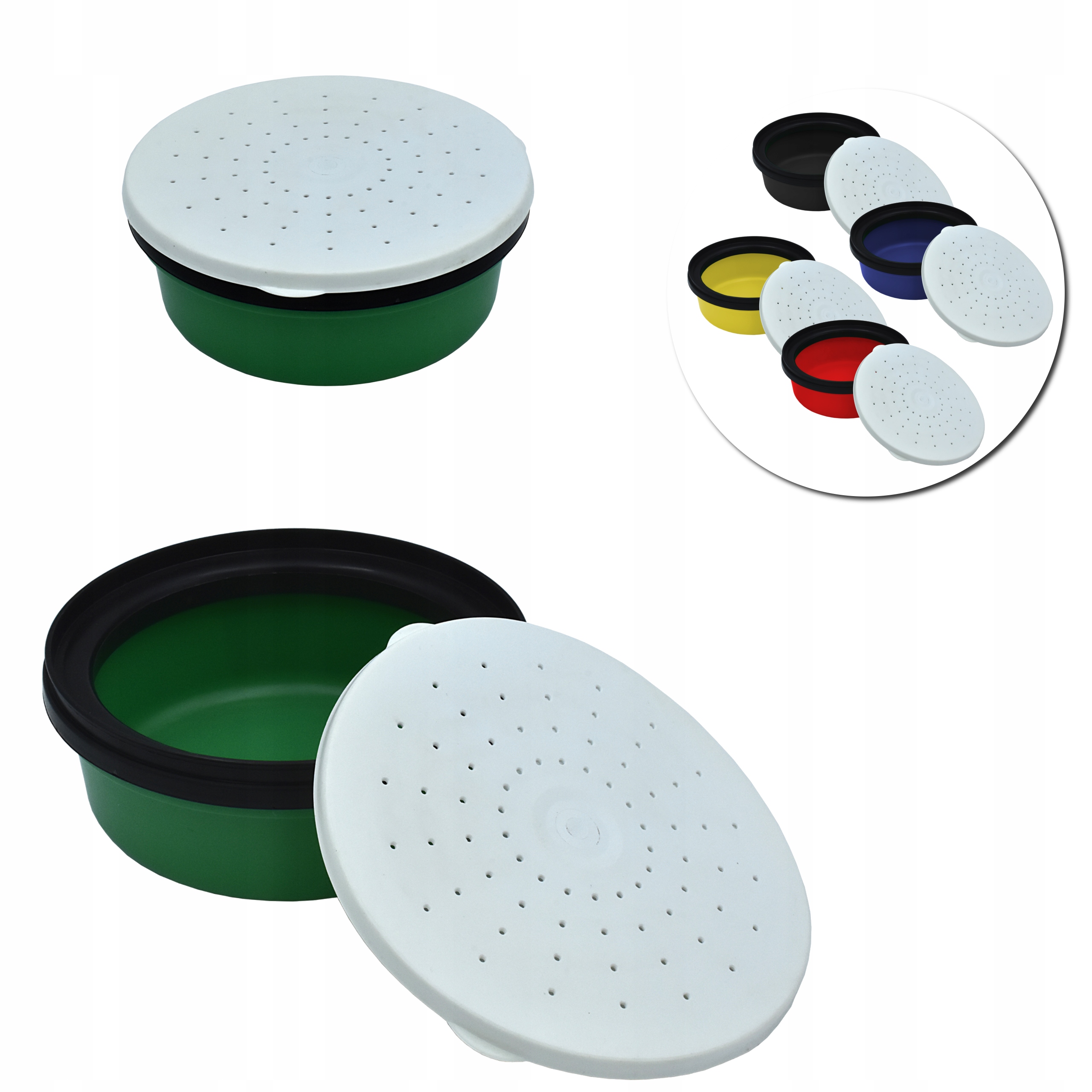 Pojemnik posiada perforowaną pokrywkę zapewniającą dostęp tlenu dla żywej przynęty.
