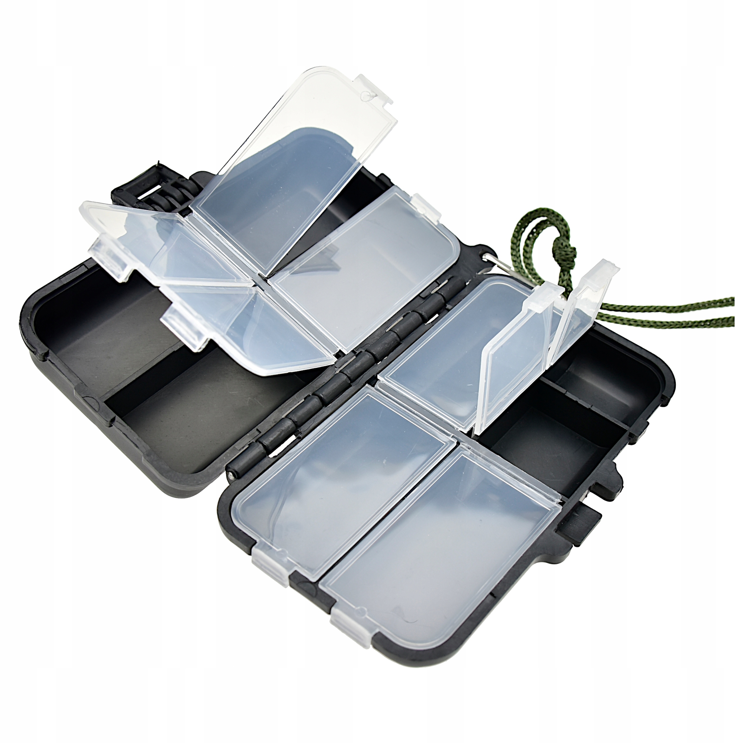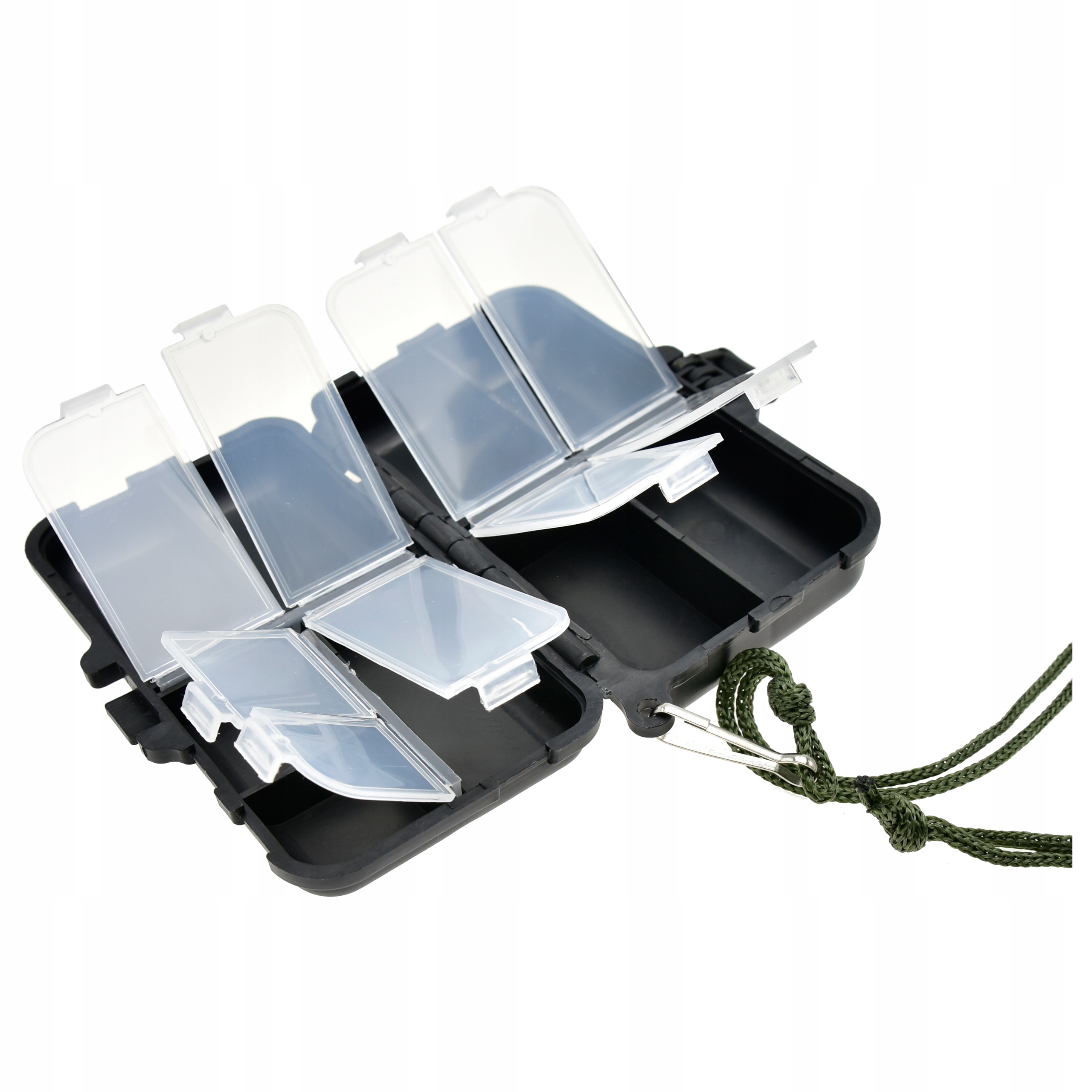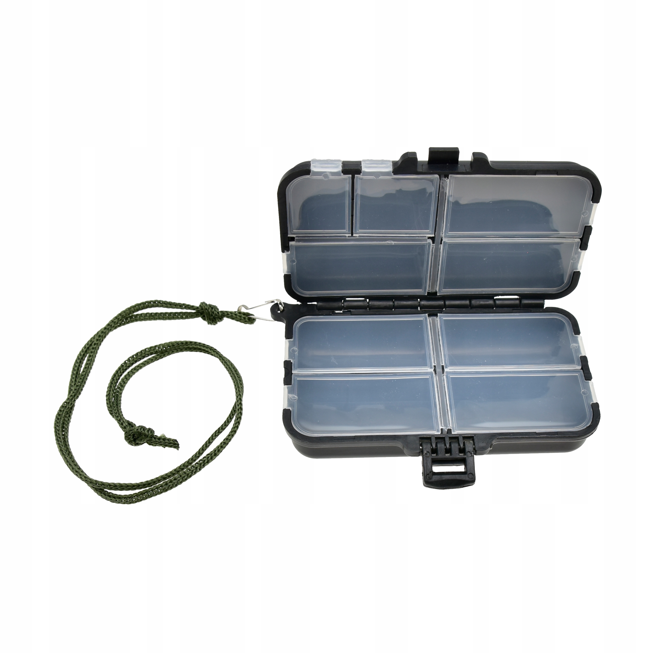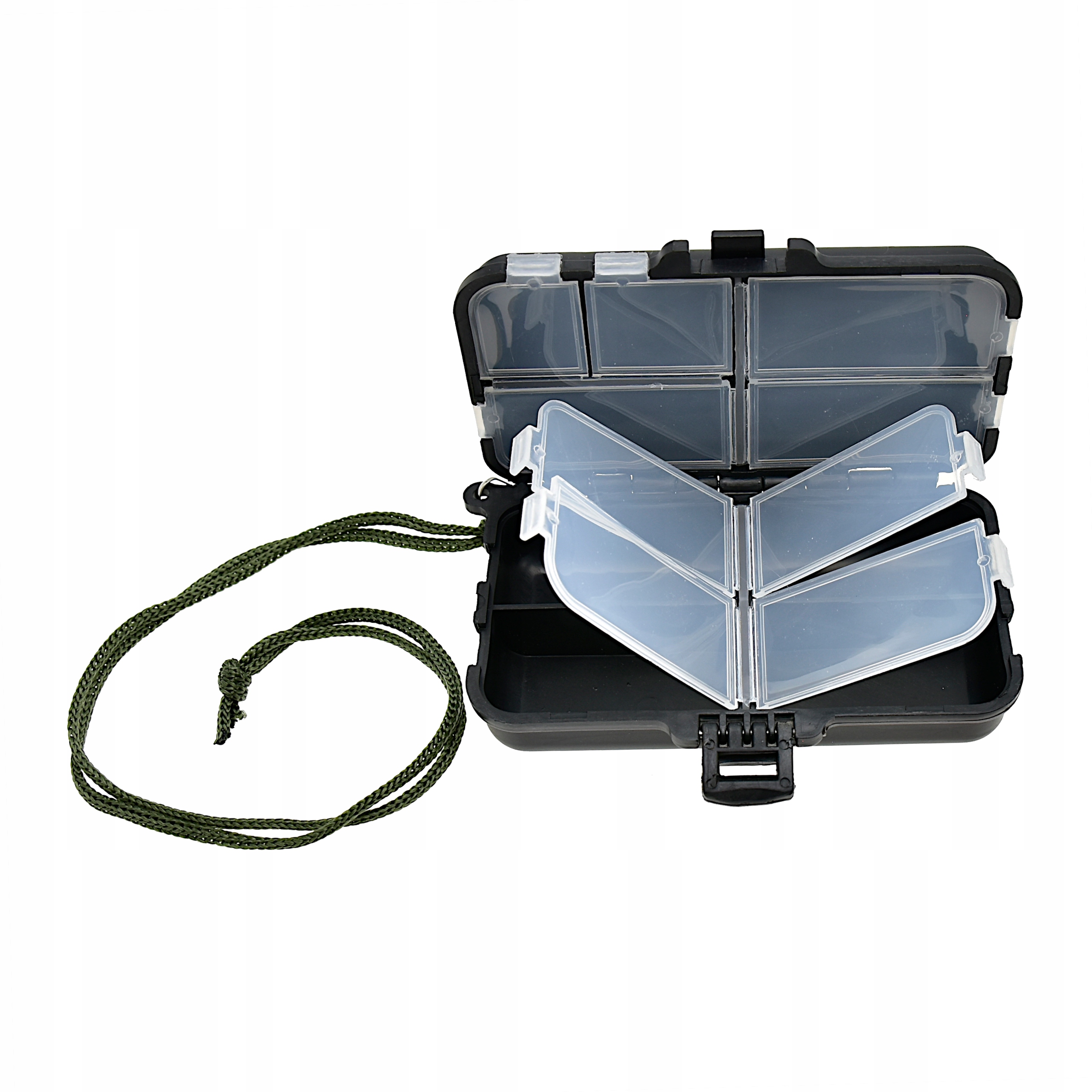 Bardzo praktyczne - pudełko/skrzynka - pozwoli nam na rozmieszczenie wędkarskiego ekwipunku według indywidualnych potrzeb. Idealne na haczyki krętliki i inne niezbędne akcesoria wędkarskie. Otwór w korpusie umożliwia zamocowanie uchwytu (w komplecie sznureczek z agrafką)