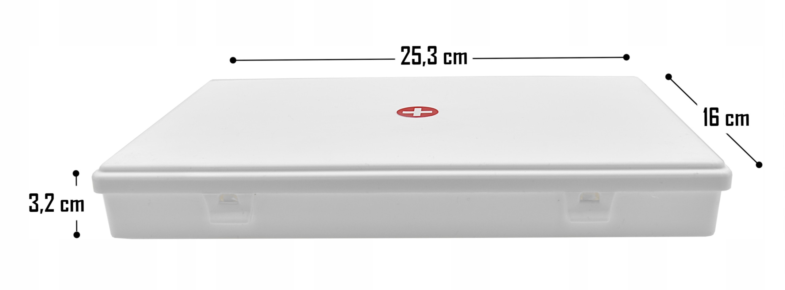 Plastikowe pudełko przeznaczone do przechowywania leków, bądź artykułów pierwszej pomocy takich jak plastry, gaza, bandaże, kremy do twarzy itp.