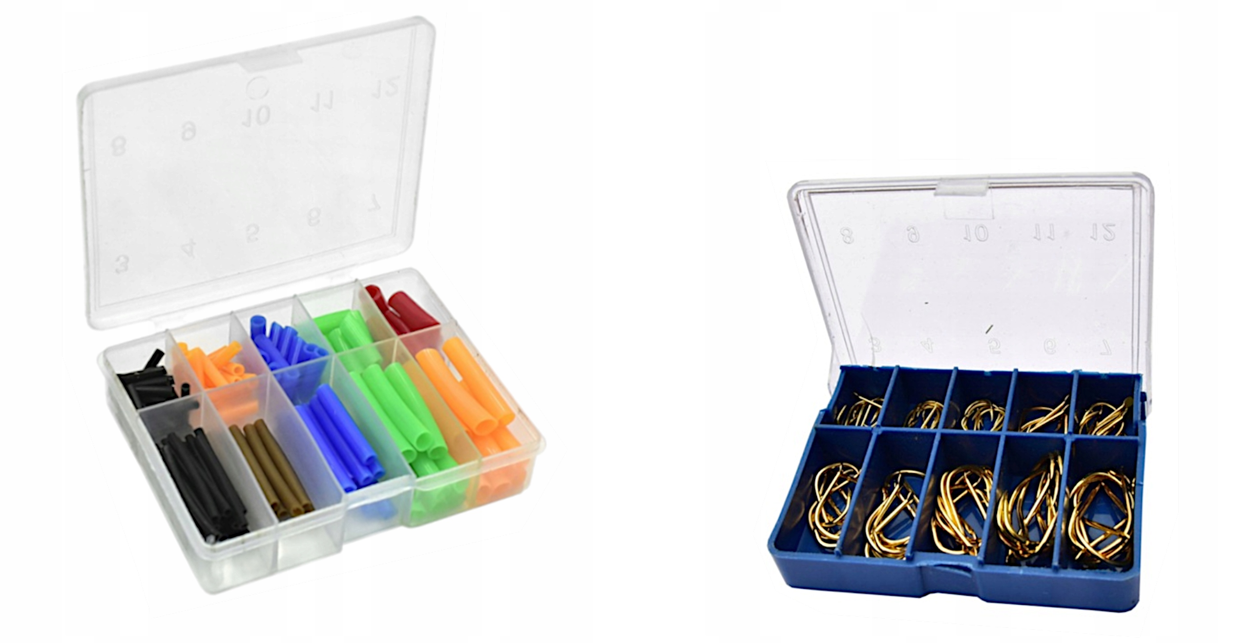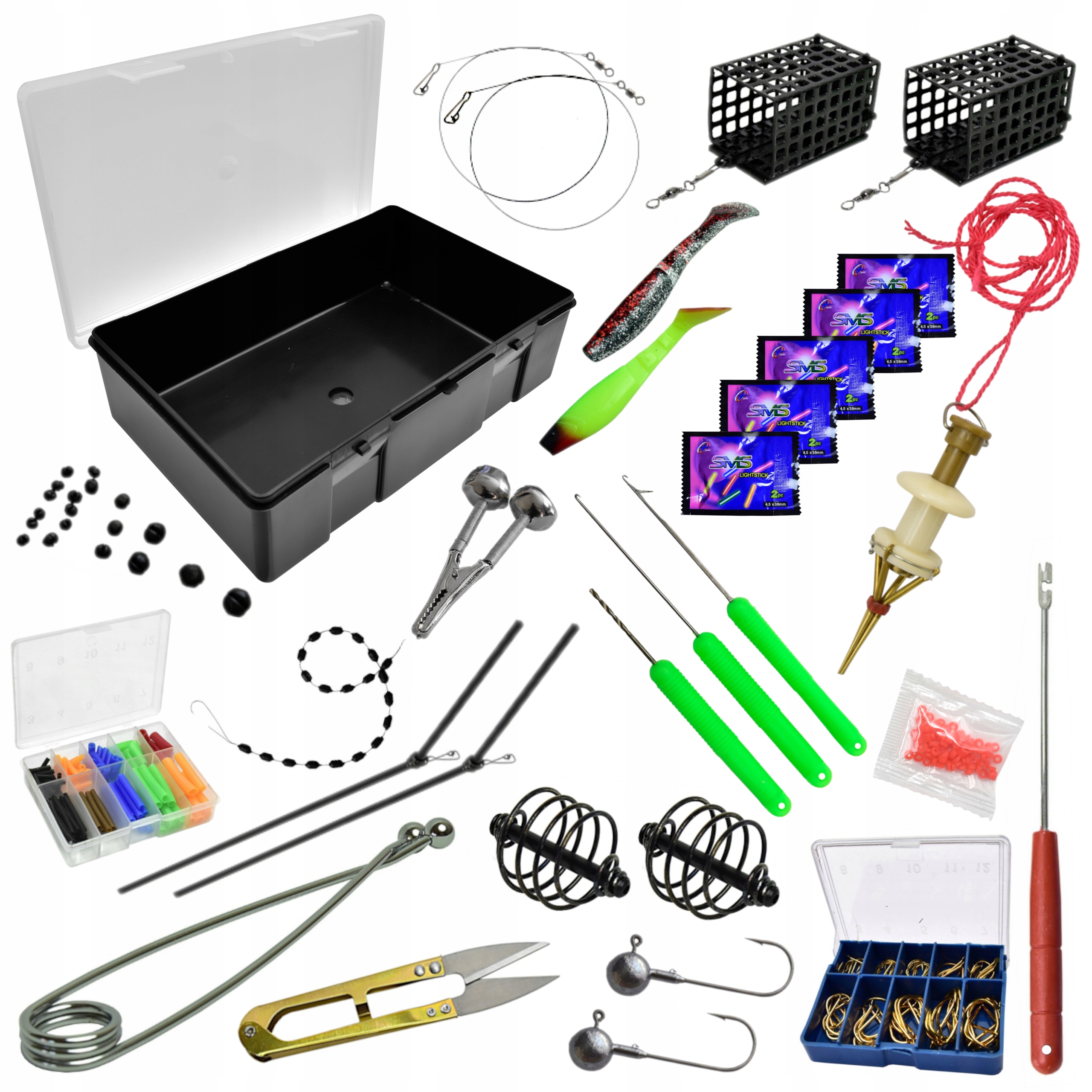 A więc w komplecie otrzymujemy Pudełko wędkarskie Anplast o pojemności 2,5 L + zestaw akcesoriów wędkarskich