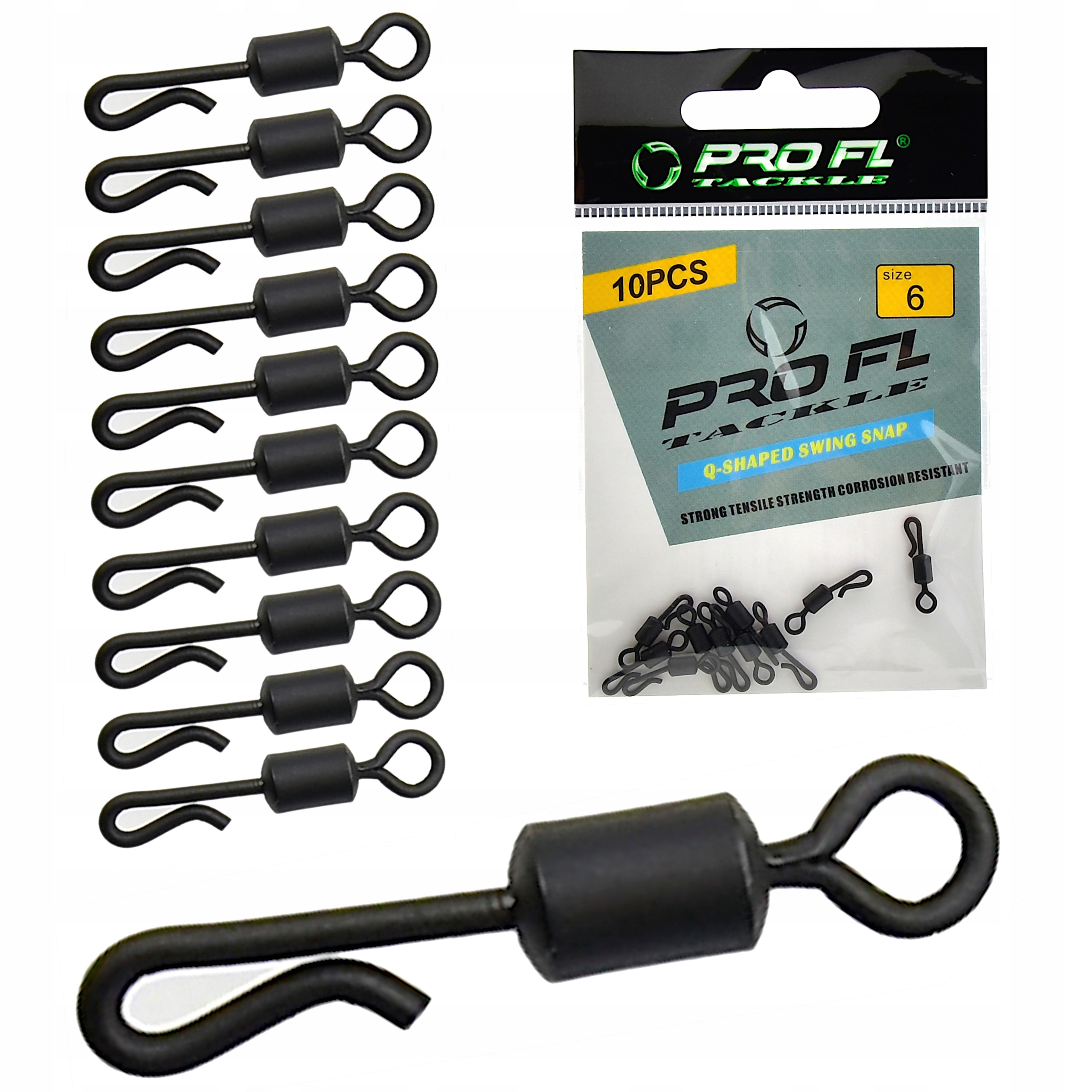 Q-Shaped Swing Snap Krętlik do Szybkiej Wymiany Przyponów 10 szt. Rozmiar 6