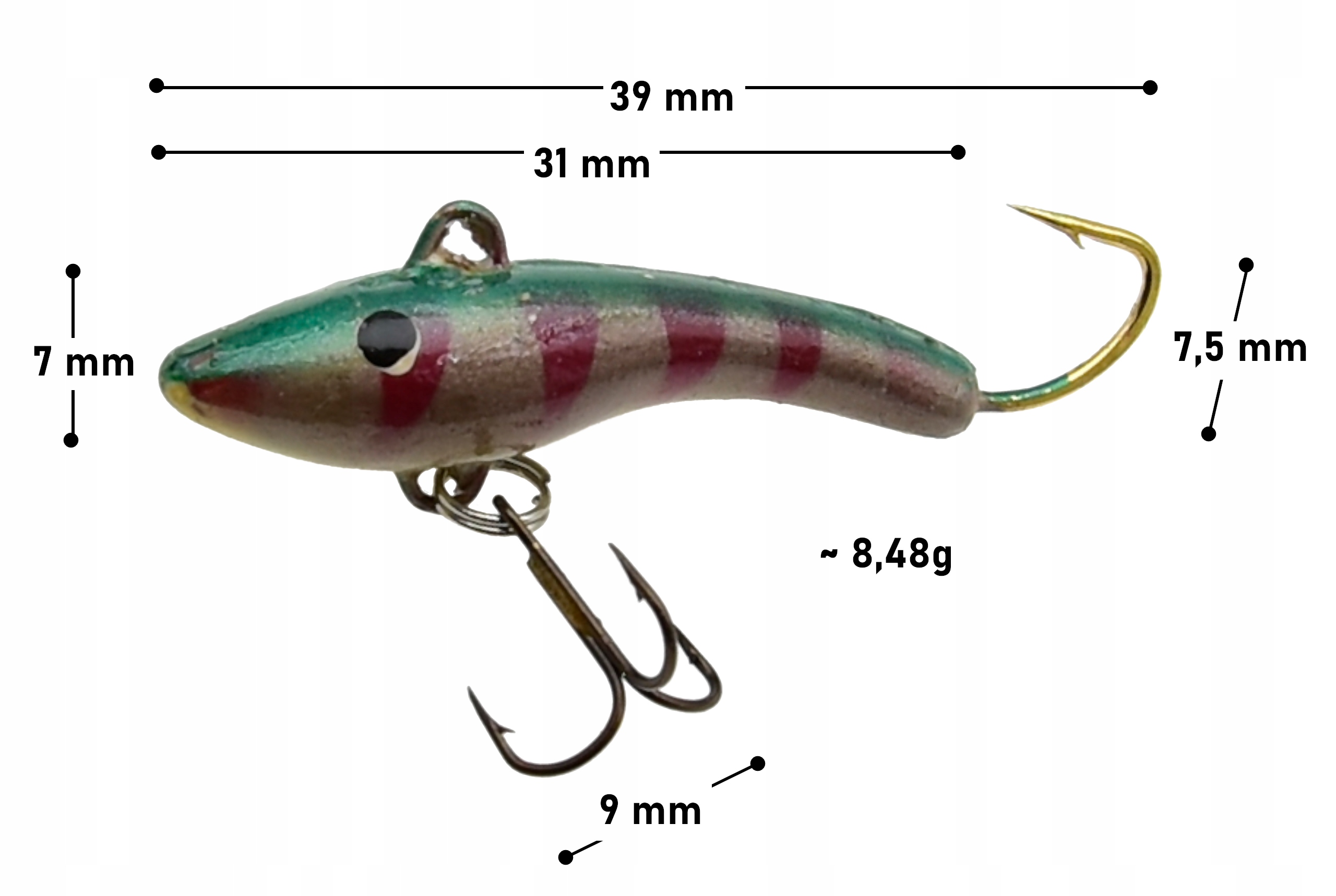 Rybka Balansowa Podlodowa 39 mm 8,48 g Okoń Sandacz Szczupak Przynęta