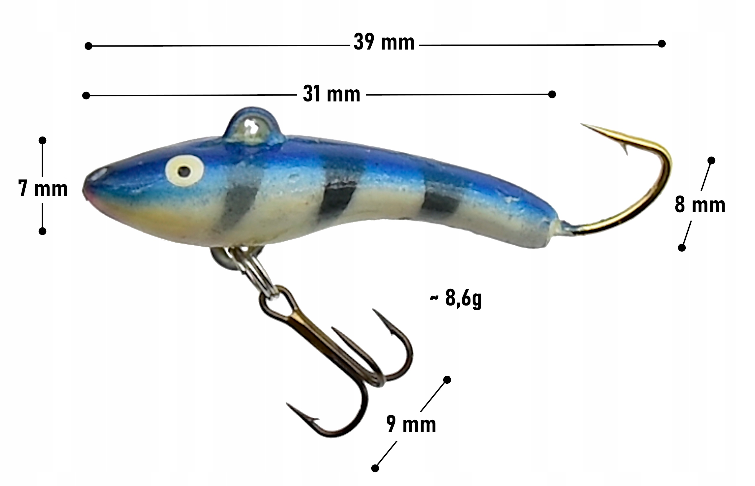 Rybka Balansowa Podlodowa 39 mm 8,6 g Okoń Sandacz Szczupak Przynęta