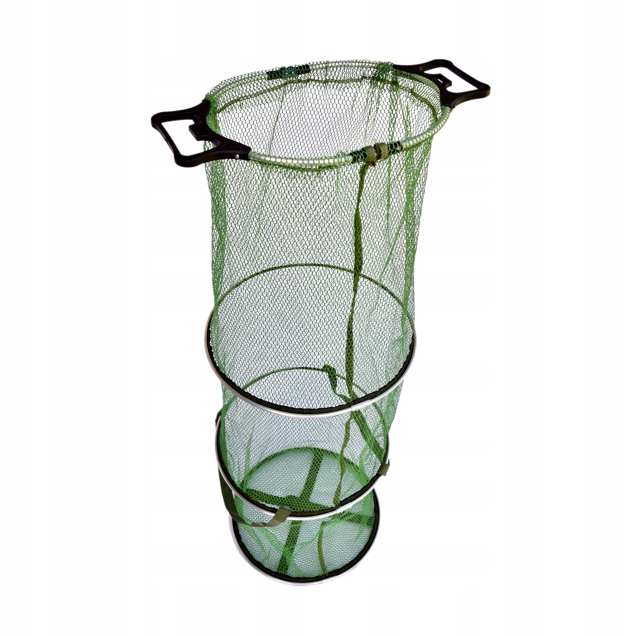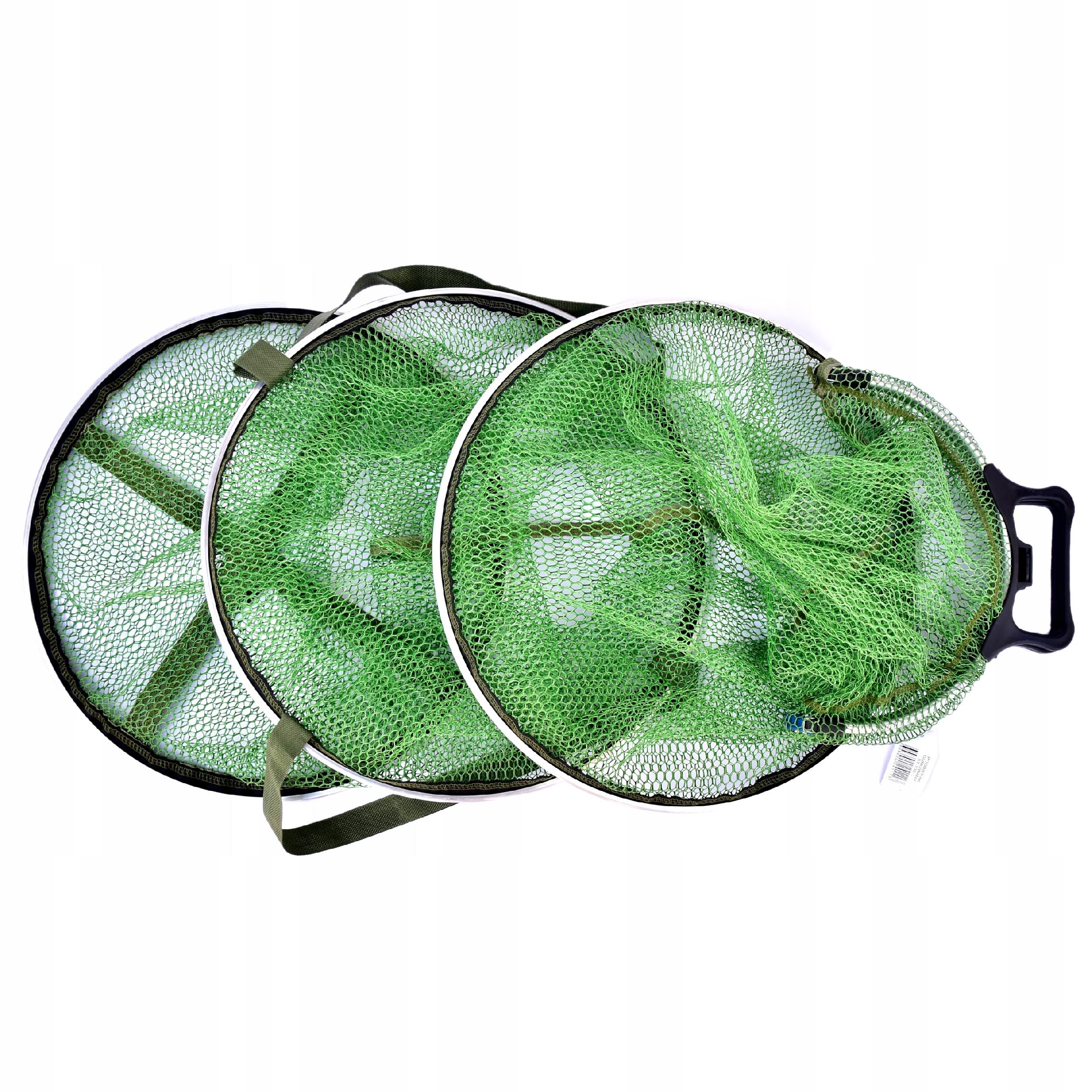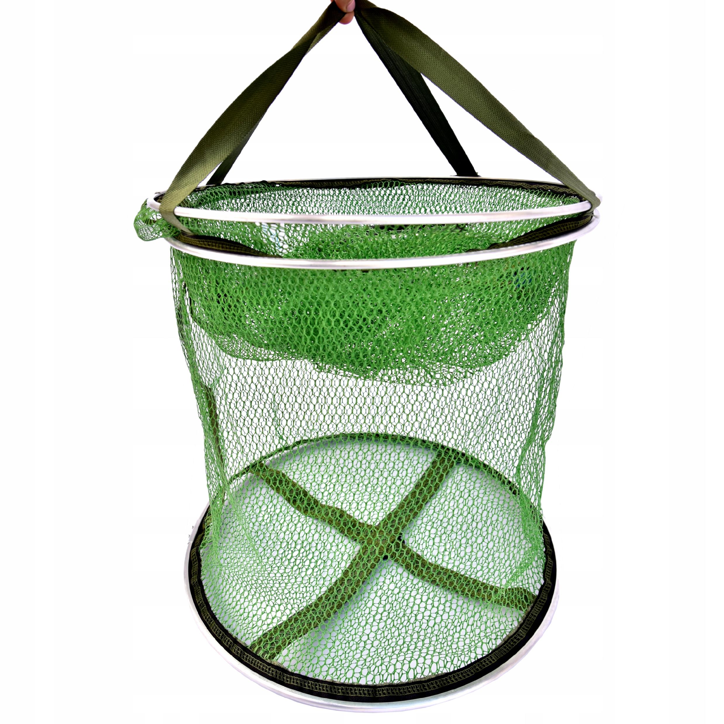 - Uchwyty transportowe: mocne uszy (widoczne na zdjęciu), dzięki którym można wygodnie przenieść siatkę nawet z rybami