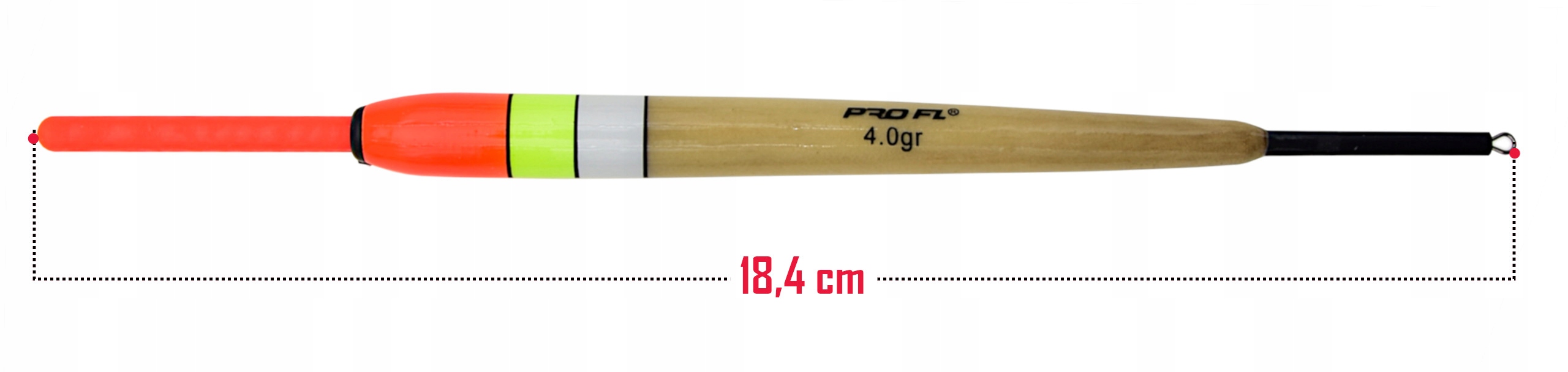 Spławik przelotowy PRO FL 4g 18,4 cm na świetlik czerwony lub żółty czubek