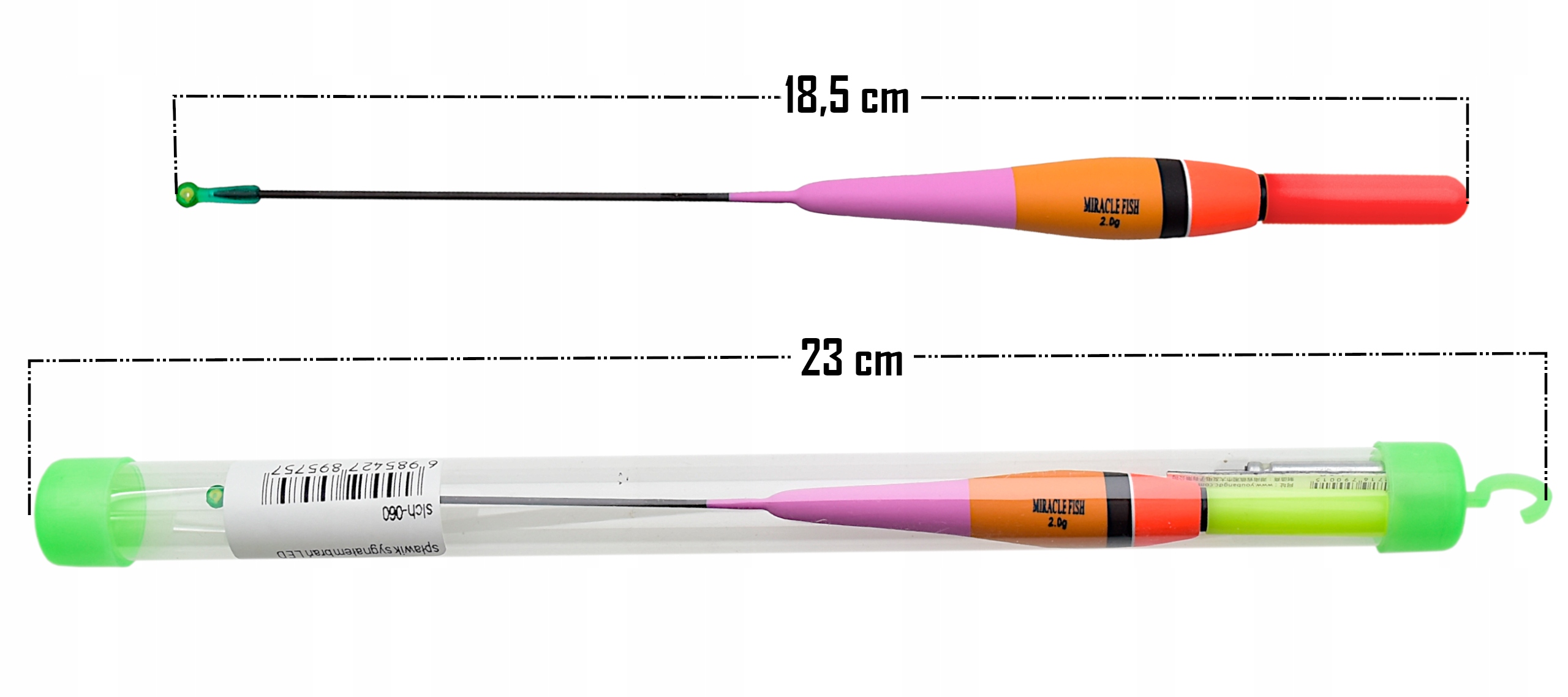 - Całkowita długość spławika: 18,5 cm