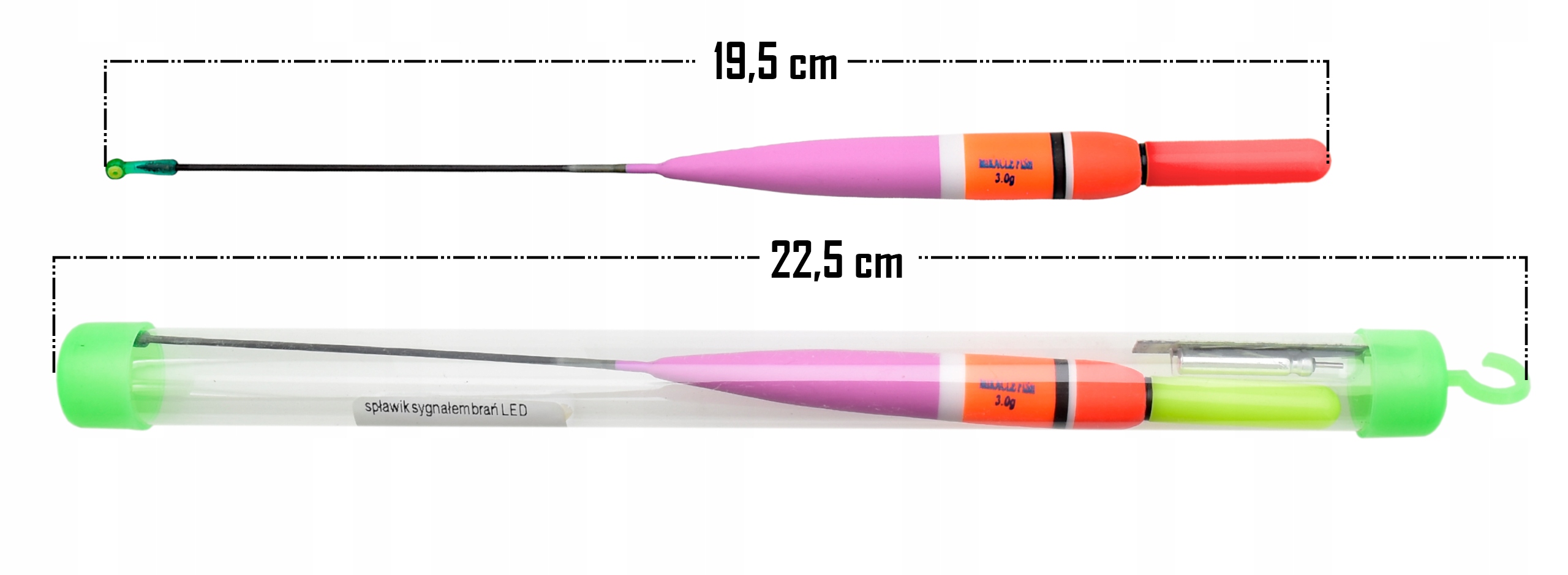 - Całkowita długość spławika: 19,5 cm
