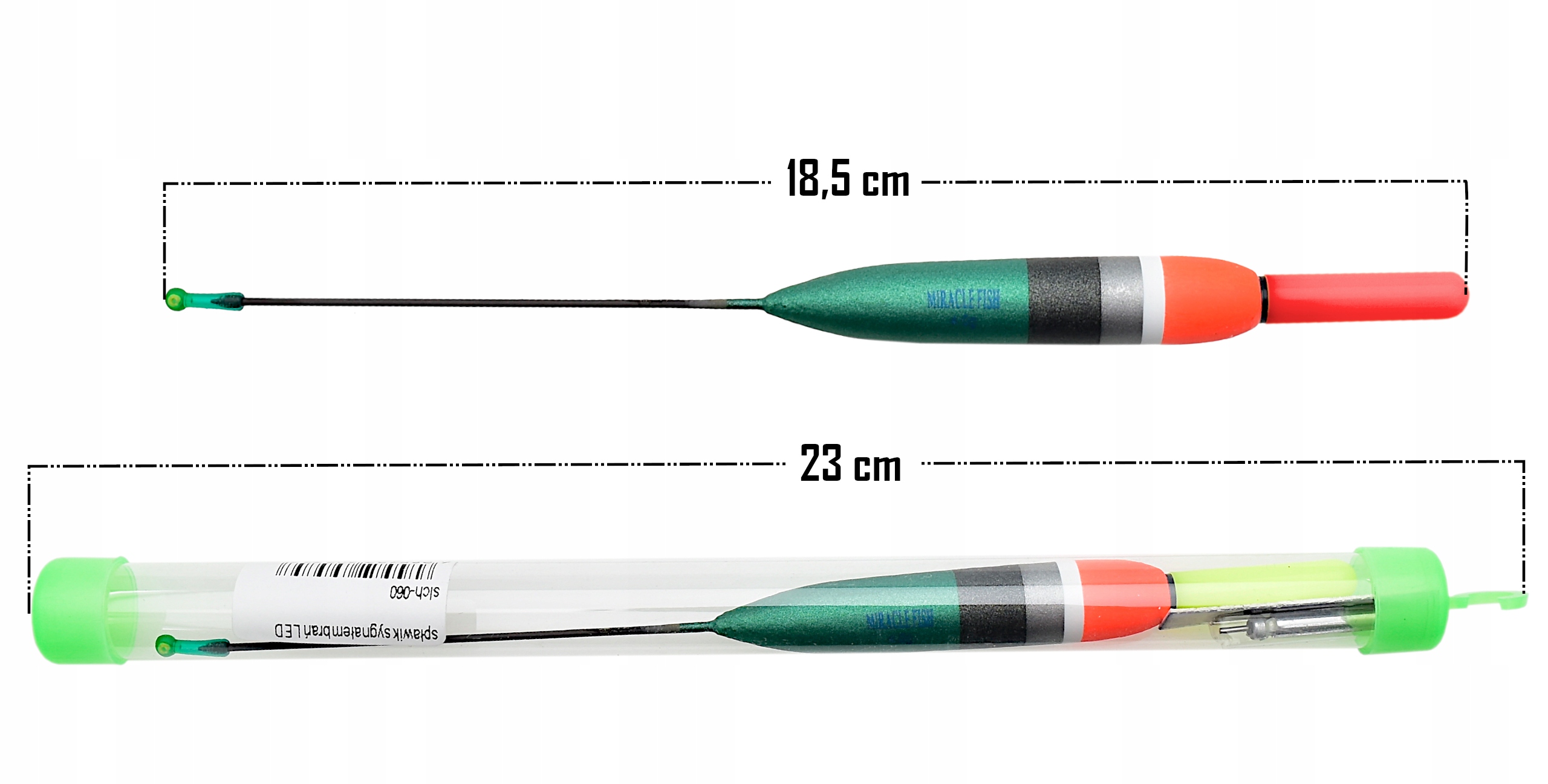 - Całkowita długość spławika: 18,5 cm