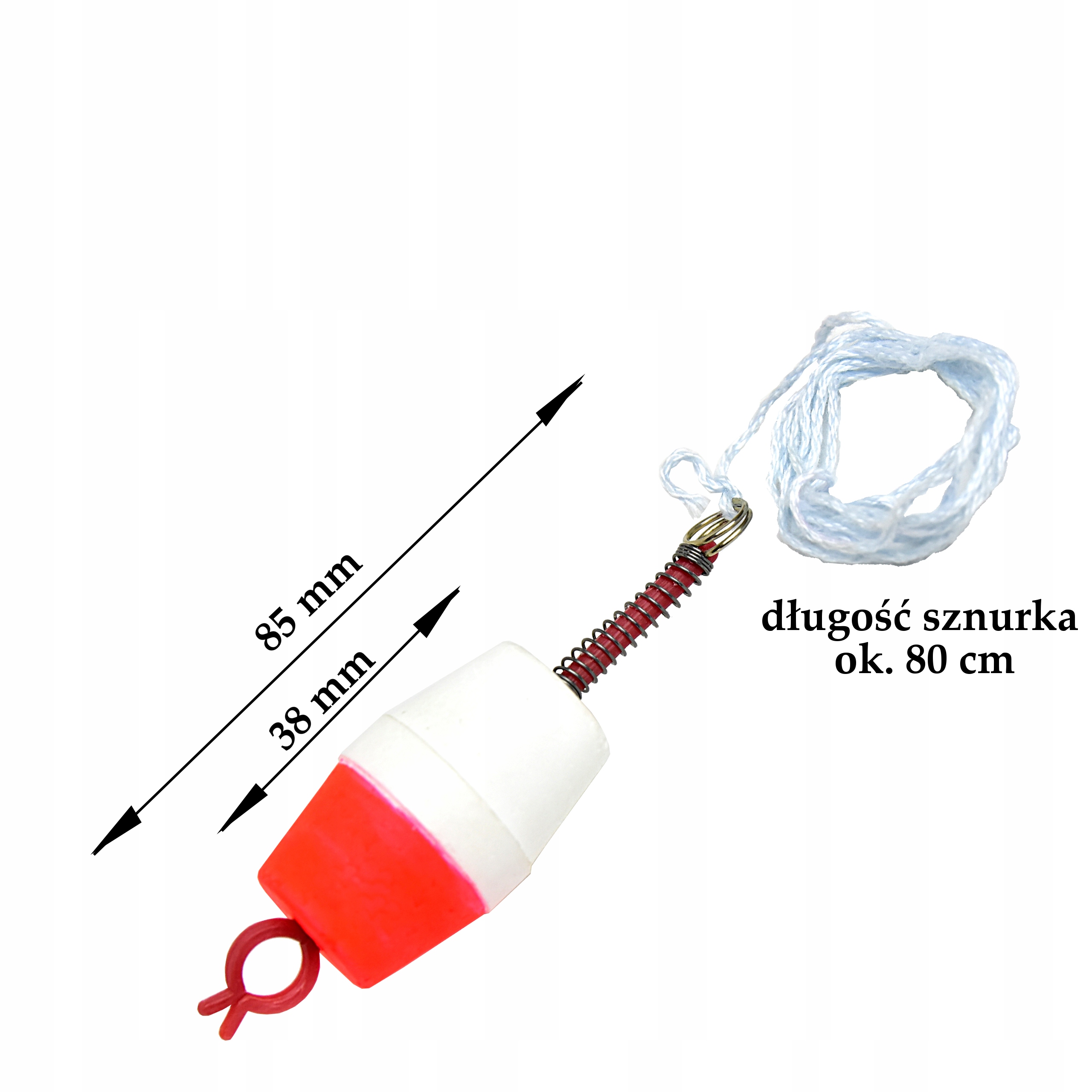 Sygnalizator brań do podwieszania na żyłce samowypinający