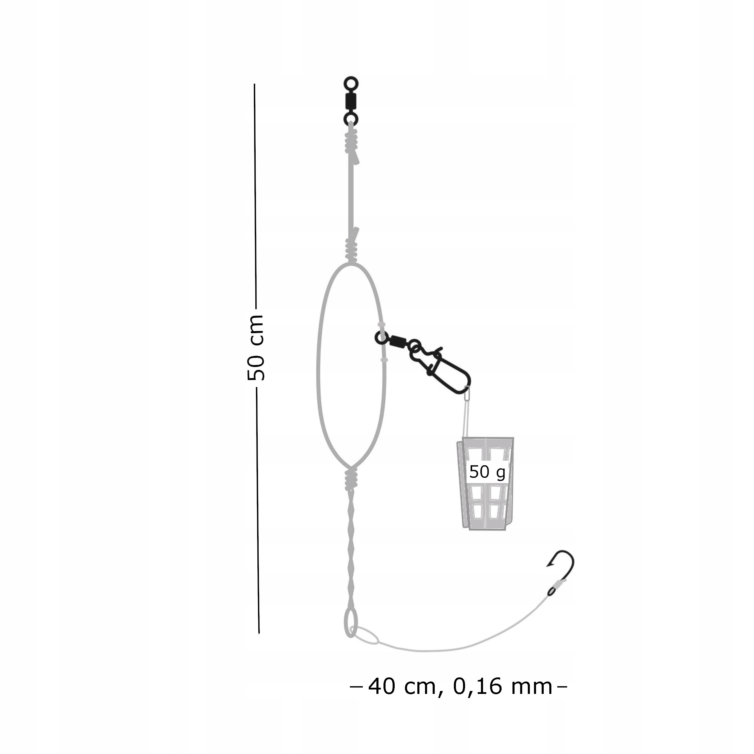 Feeder Rig Symetryczna pętla to profesjonalny - ręcznie zmontowany zestaw do połowu aktywnych ryb. Zamontowany w nim koszyk zanętowy Cage Feeder Distance idealnie nadaje się do dalekich rzutów.