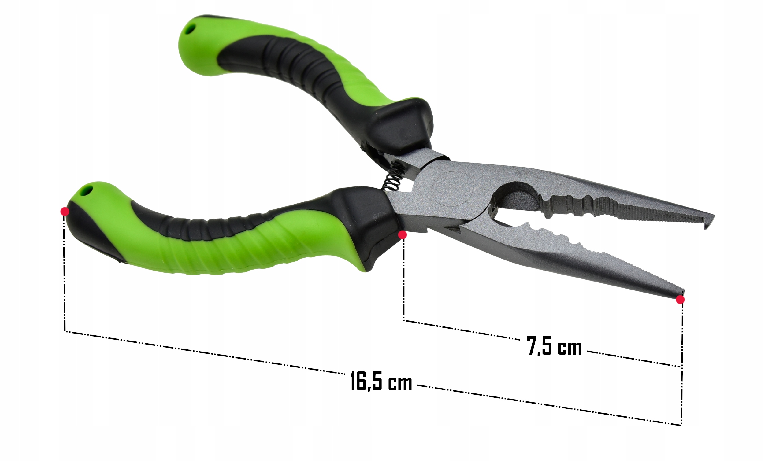 Kompaktowy rozmiar (16,5 cm długości, 7,5 cm część robocza) sprawia, że szczypce bez problemu mieszczą się w torbie, kamizelce lub skrzynce wędkarskiej. To uniwersalny wybór do spinningu, gruntówki czy metody, który z powodzeniem zastąpi kilka osobnych narzędzi.