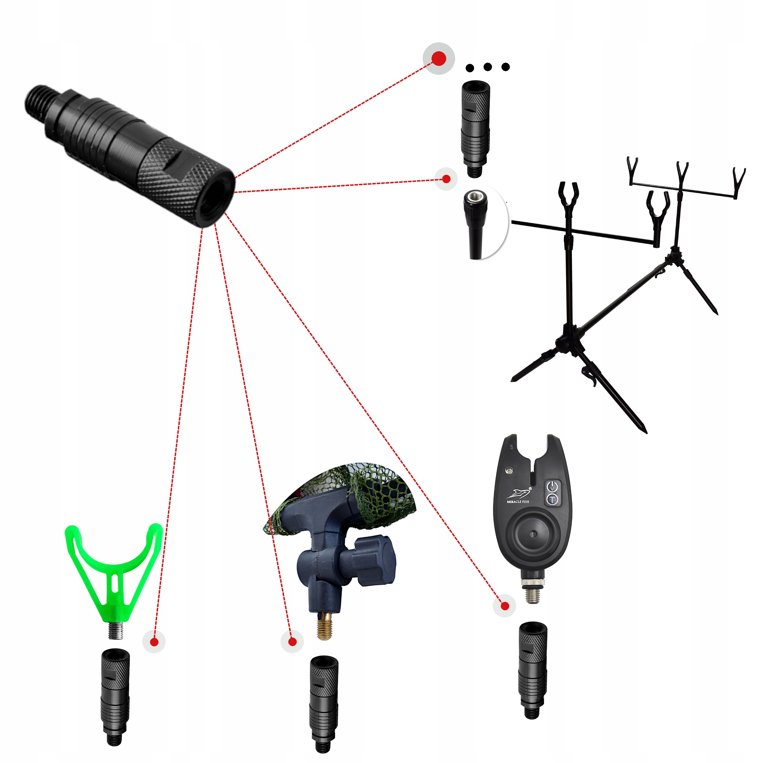 - Gwint: uniwersalny do większości, sygnalizatorów, podpórek, siatek wędkarskich, rod pod-ów, tri pod-ów, rękojeści, podbieraków, itp.