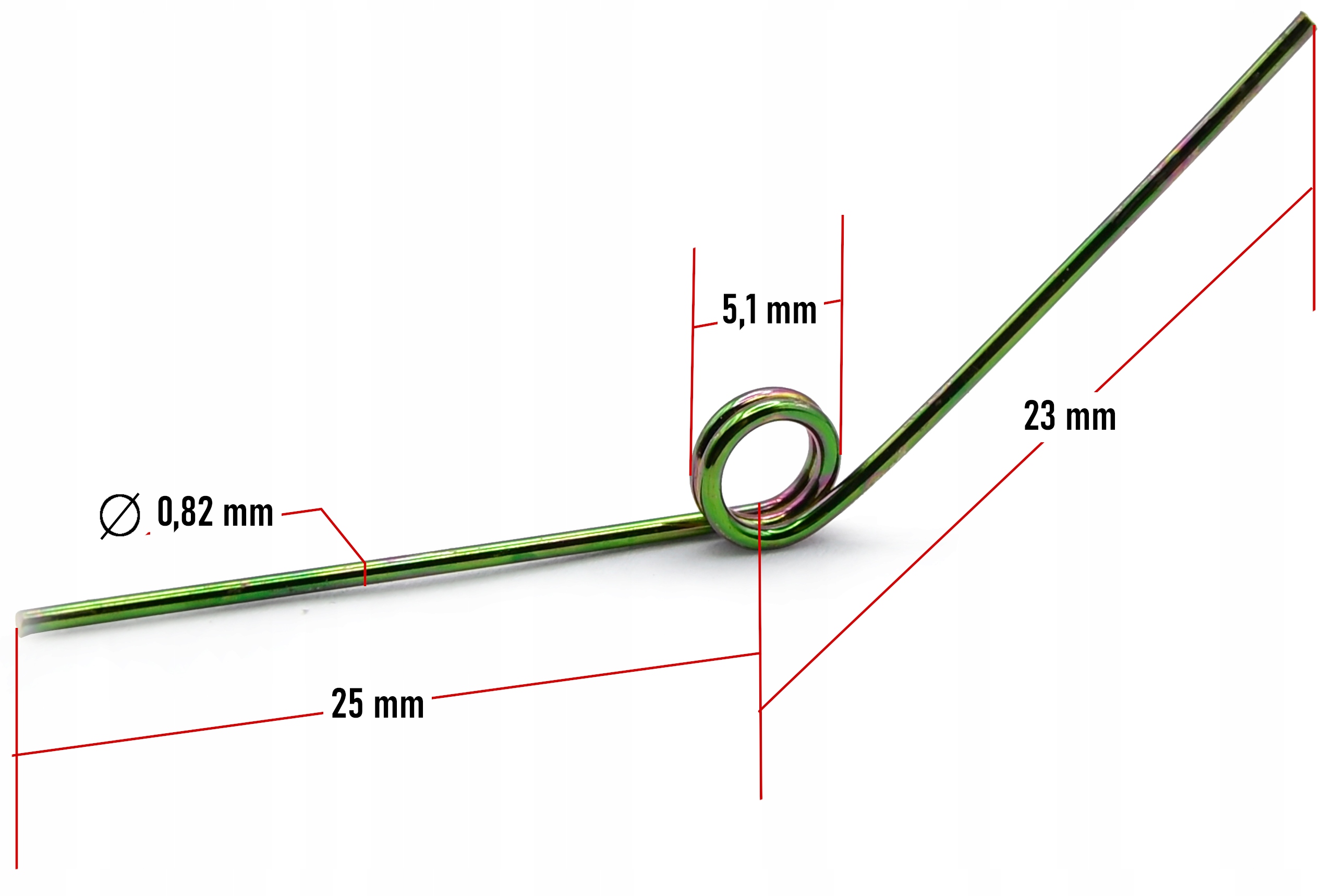 - Długość ramiom sprężyny: 25 mm i 23 mm
