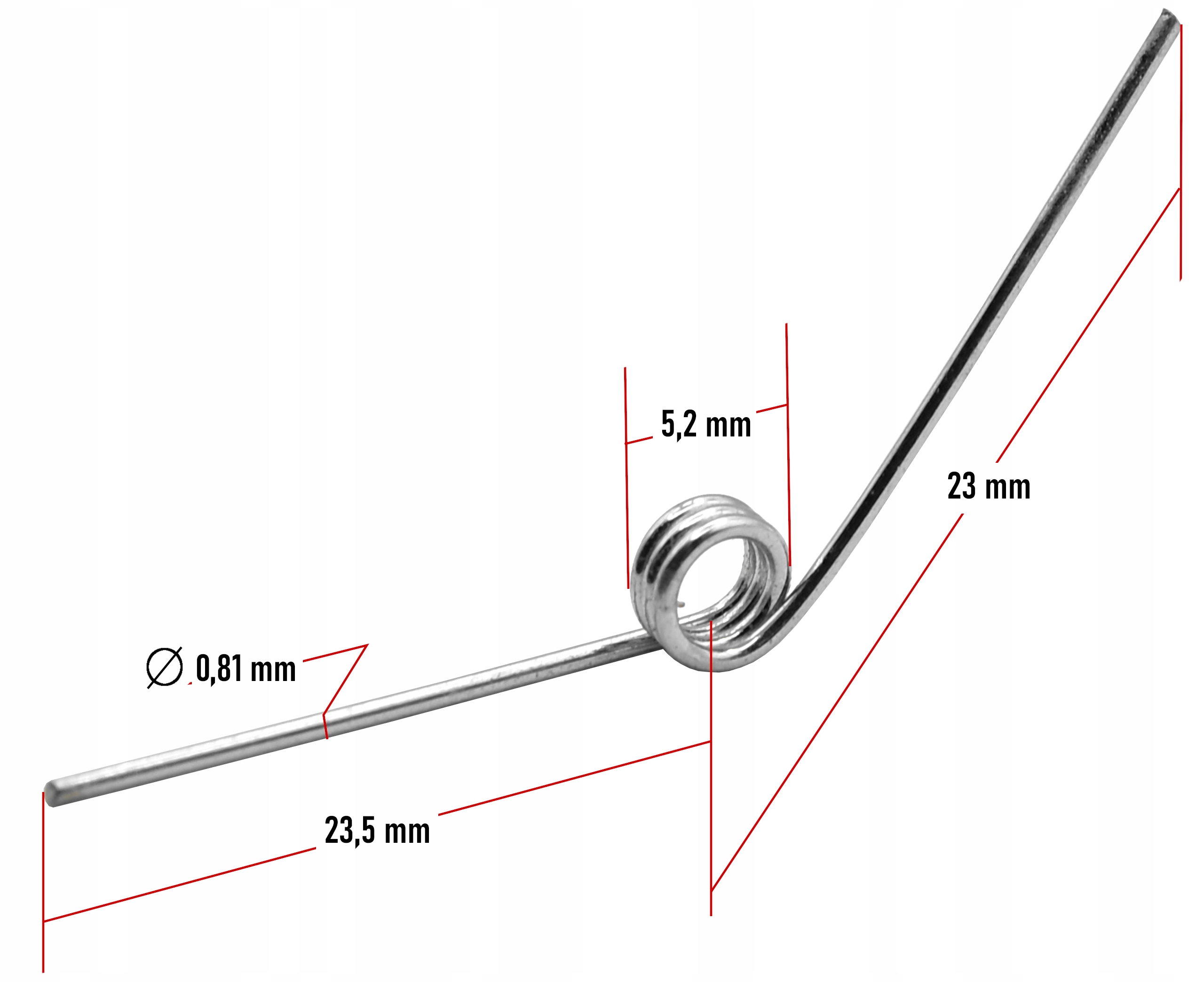 - Długość ramiom sprężyny: 23,5 mm i 23 mm
