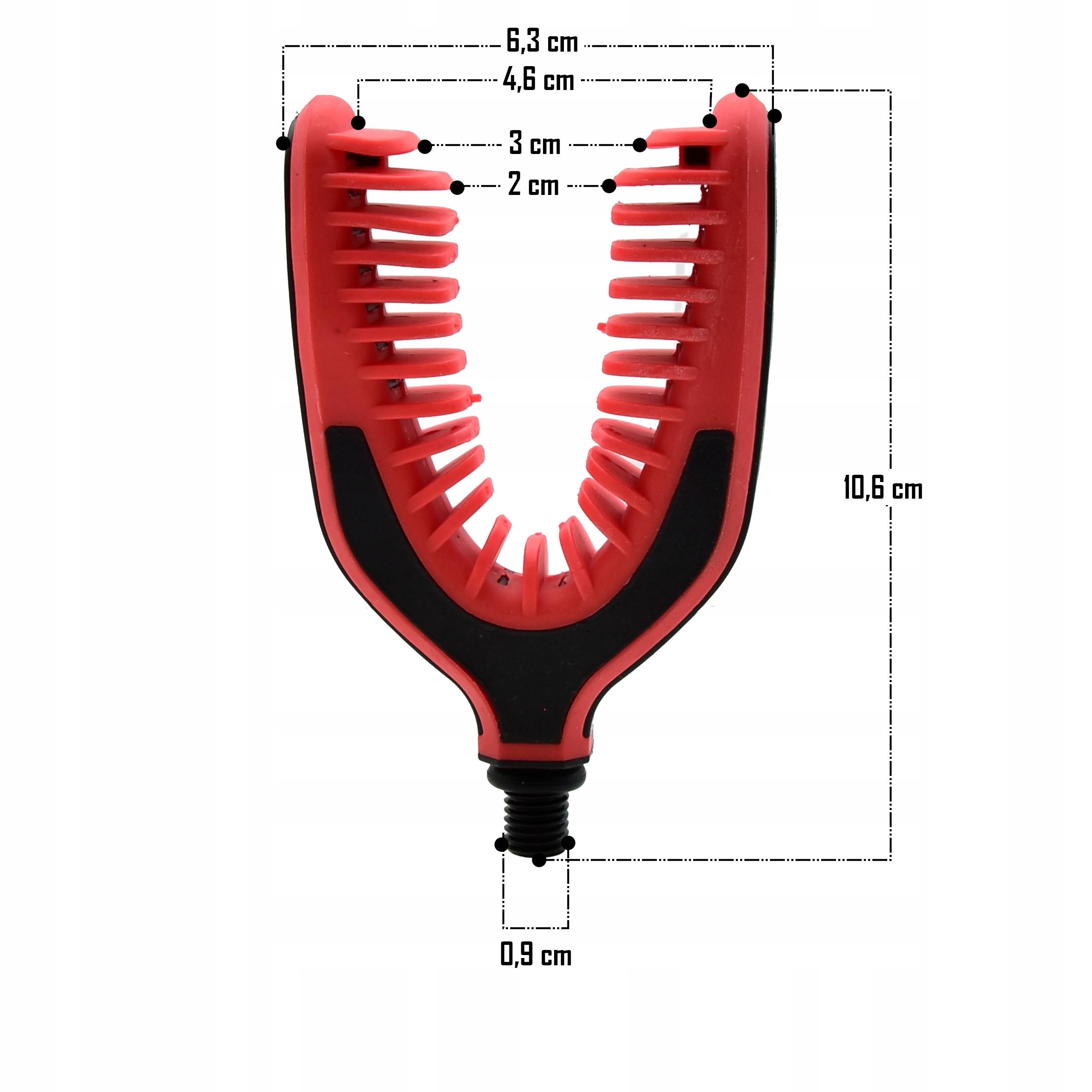 Końcówka wykonana jest z elastycznej nie odkształcającej się gumy, posiada standardowy gwint pasujący do większości podpórek, rodpodów, sztyc, itp. Mocno trzyma wędzisko na swoim miejscu a gumowy materiał chroni przed uszkodzeniami.
