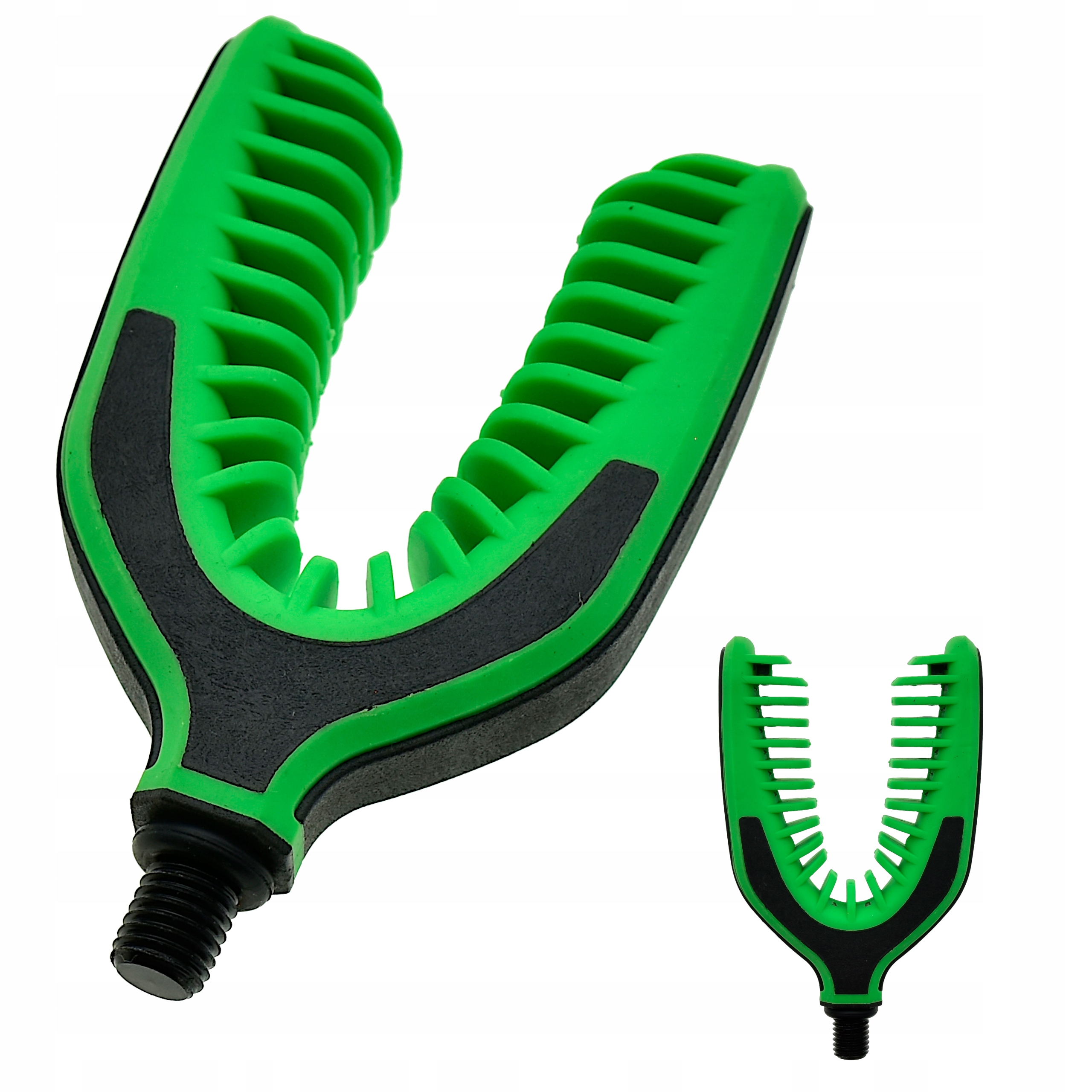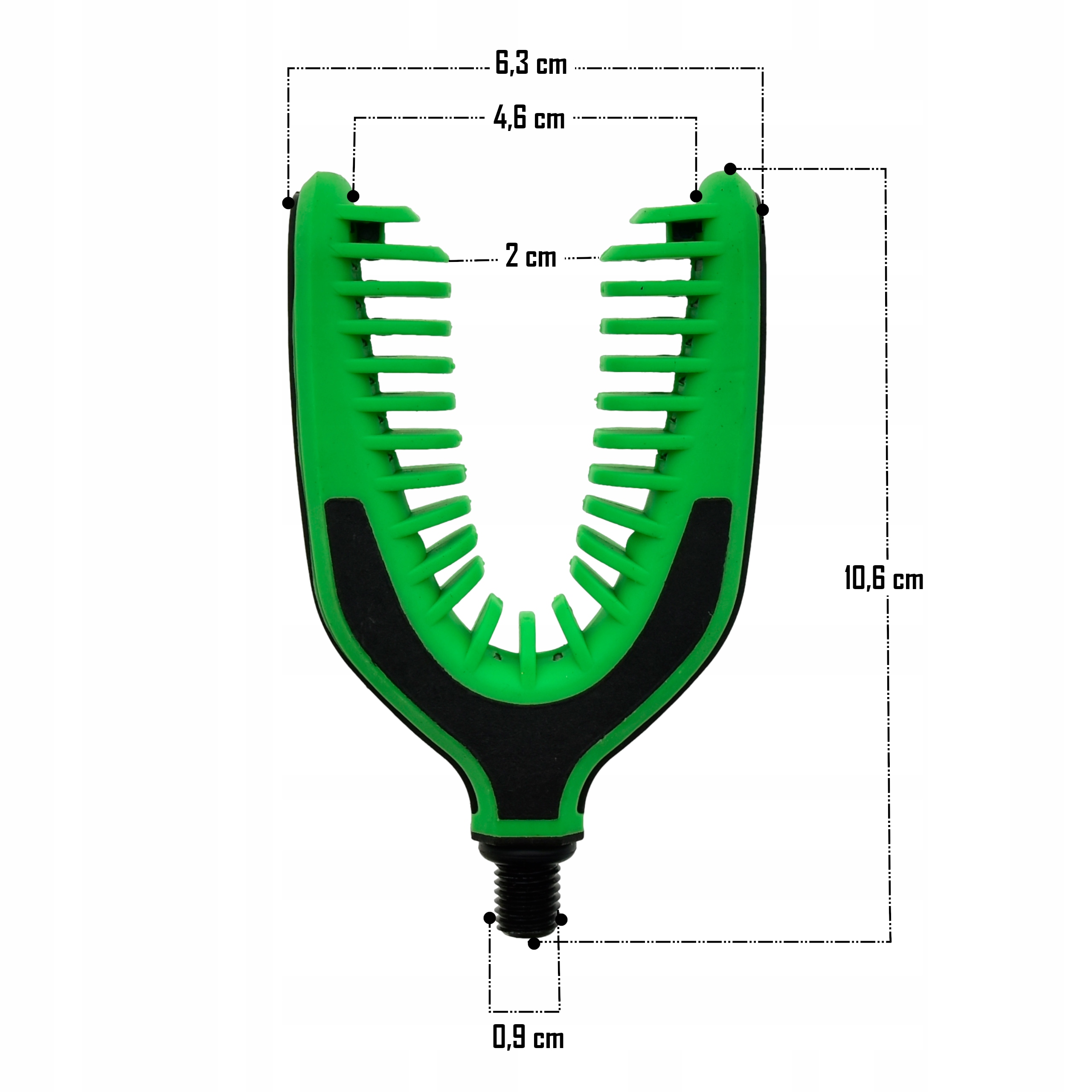 Końcówka wykonana jest z elastycznej nie odkształcającej się gumy, posiada standardowy gwint pasujący do większości podpórek, rodpodów, sztyc, itp. Mocno trzyma wędzisko na swoim miejscu a gumowy materiał chroni przed uszkodzeniami.