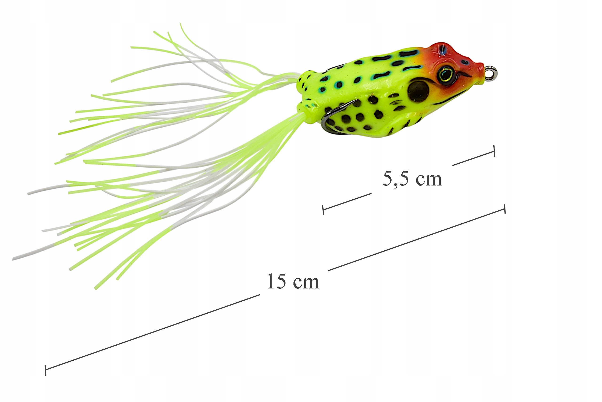 Imitacje Żab o bardzo realistycznym kształcie, puste w środku uzbrojone w podwójną, bardzo ostrą kotwicę oraz intensywnie pracujące, sylikonowe chwosty udające nogi. Jeśli masz mega zarośnięte miejscówki, w których wydaje Ci się, że nie ma już szans na dotarcie do potencjalej zdobyczy bo klasyczna guma i wobler nie dają rady - to nie mogłeś lepiej trafić!!!