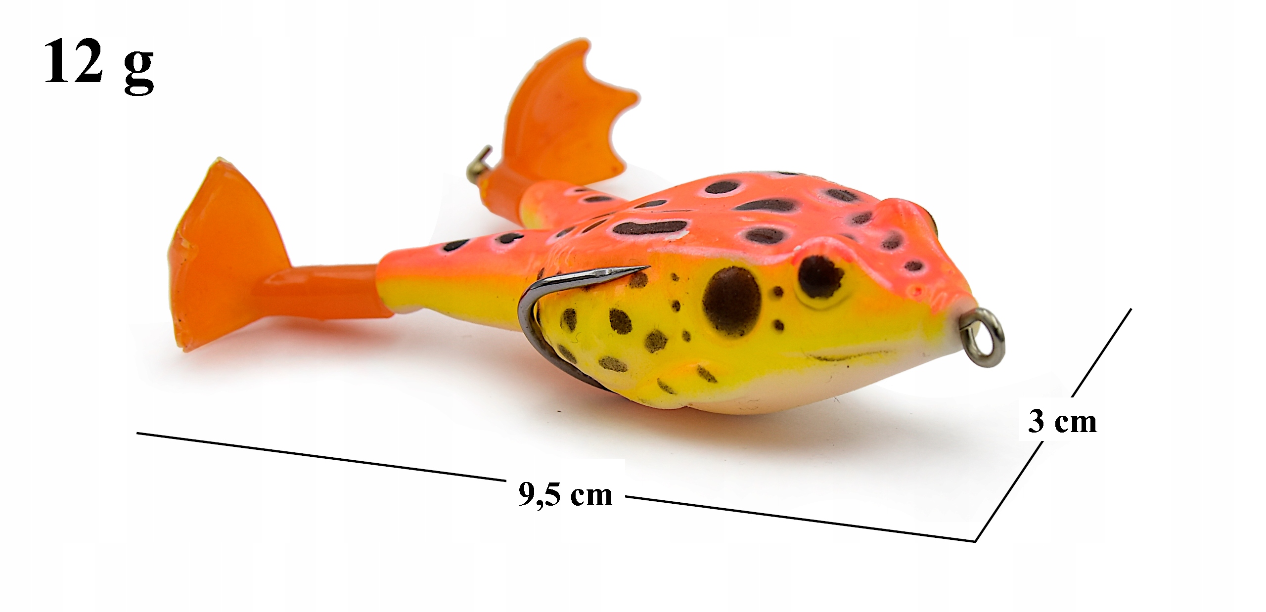 Imitacje Żab o bardzo realistycznym kształcie, puste w środku uzbrojone w podwójną, bardzo ostrą kotwicę oraz intensywnie pracujące, sylikonowe chwosty udające nogi. Jeśli masz mega zarośnięte miejscówki, w których wydaje Ci się, że nie ma już szans na dotarcie do potencjalnej zdobyczy bo klasyczna guma i wobler nie dają rady - to nie mogłeś lepiej trafić!!!