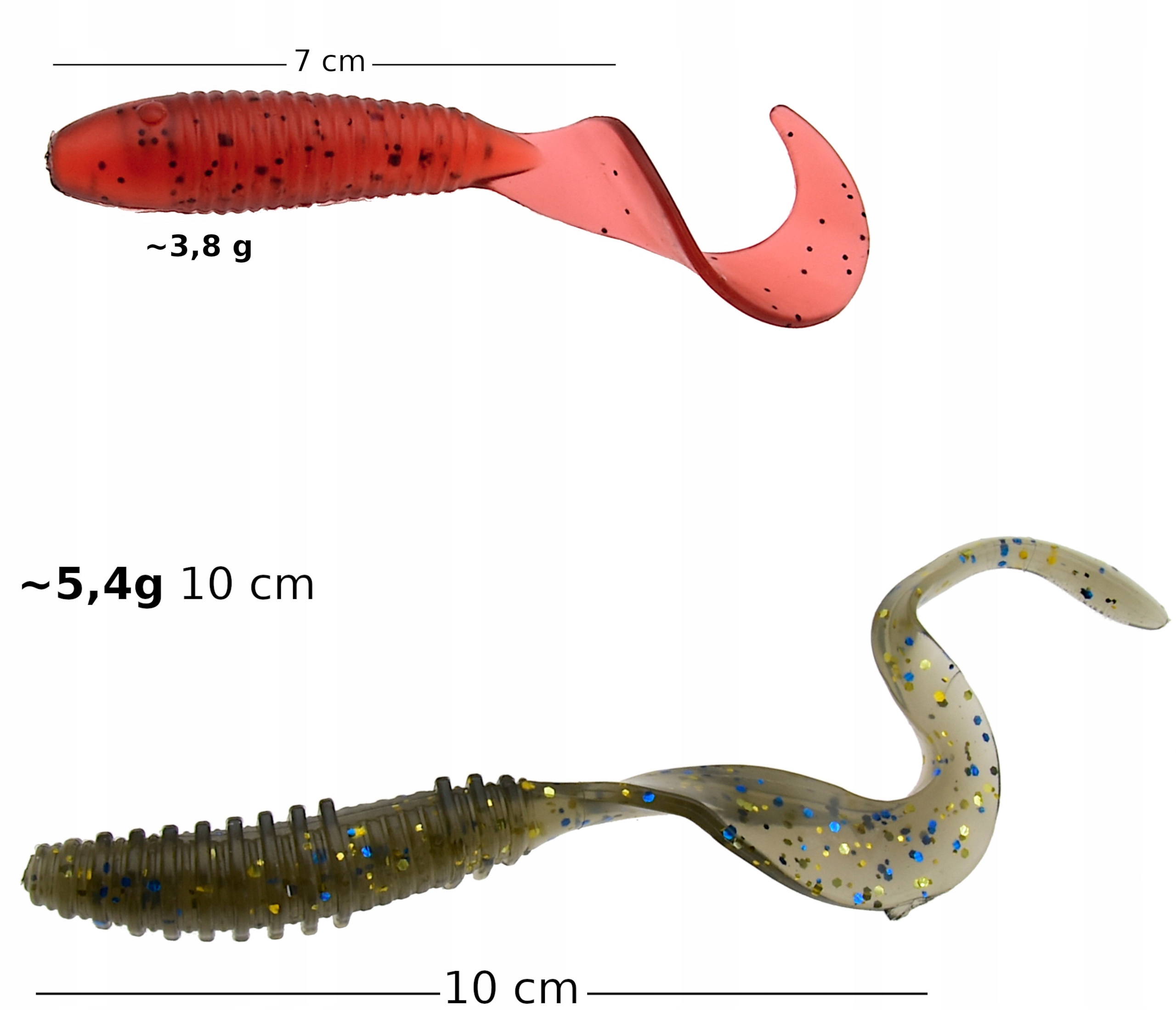 Niezbędny element wyposażenia każdego wędkarza - gumy spinningowe Twistery. Przynęty przypominające swoim kształtem małą rybkę bądź dużego robaka. Do ich korpusu przymocowane są ogonki, które wirują podczas zwijania przynęty i prowokują do brania nawet najbardziej leniwe okazy.