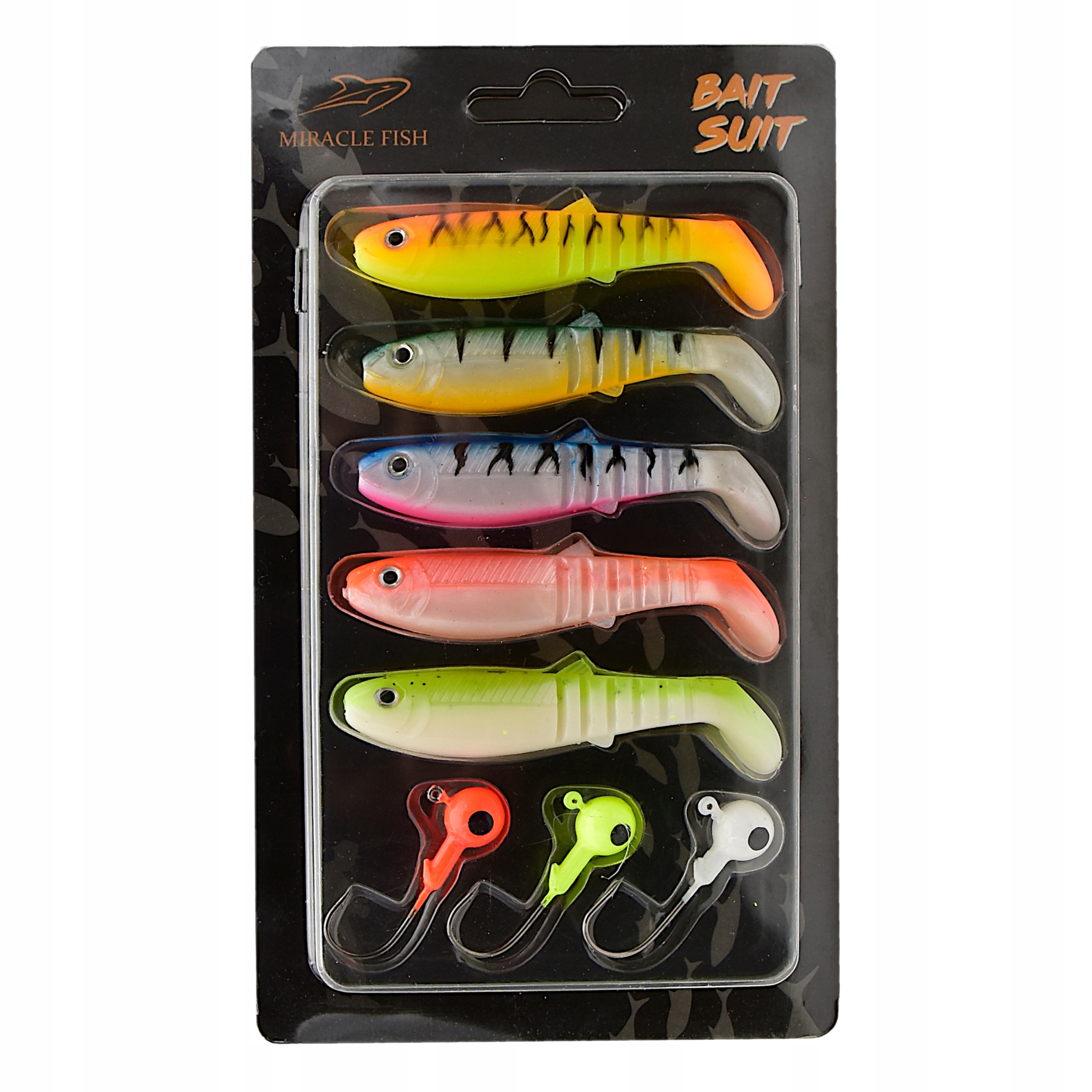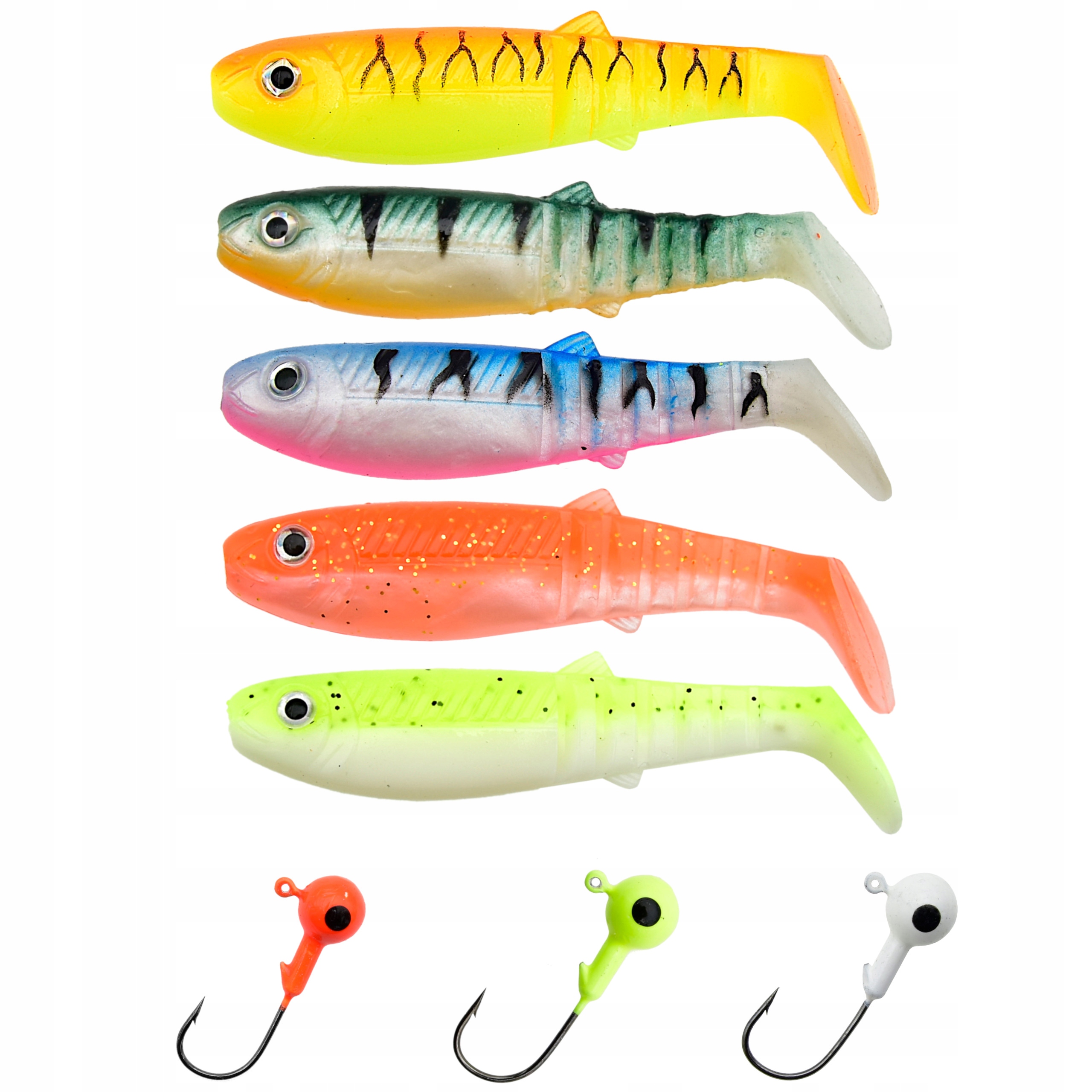 Zestaw Gumowych przynęt typu kopyto – 8 cm, ~5,9 g (5 szt.) + Główki Jigowe 3/10g (3 szt.)
