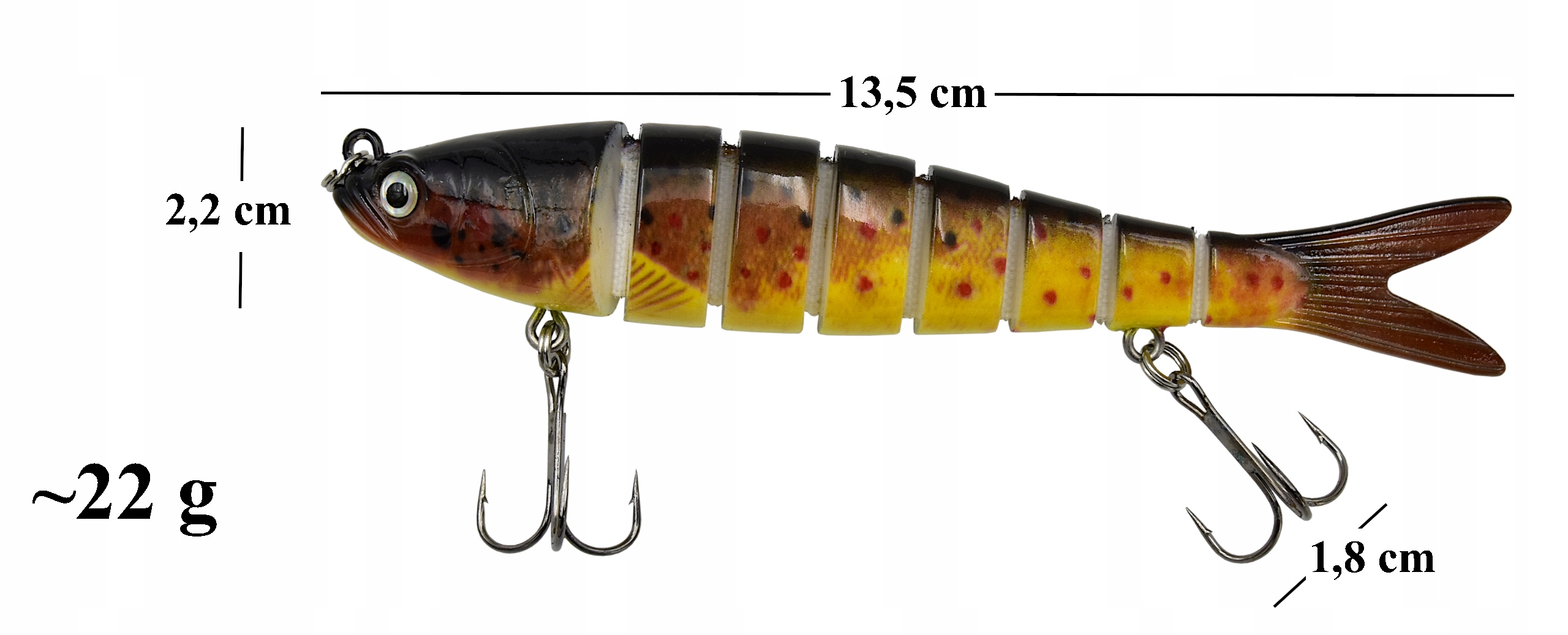 Woblery łamane to istny raj dla spinningistów uganiających się za rekordowymi pstrągami, okoniami czy kleniami. Holograficzne oczy 3D, sekcje połączone za pomocą elastycznej taśmy oraz innowacyjna metoda cyfrowego odwzorowania w wysokiej rozdzielczości dają fantastyczny efekt - a prowadzone skokami, czy metodą nieregularnego zwijania żyłki - naśladują naturalne ruchy żywej ryby - nie budząc tym podejrzeń cwanych drapieżników.