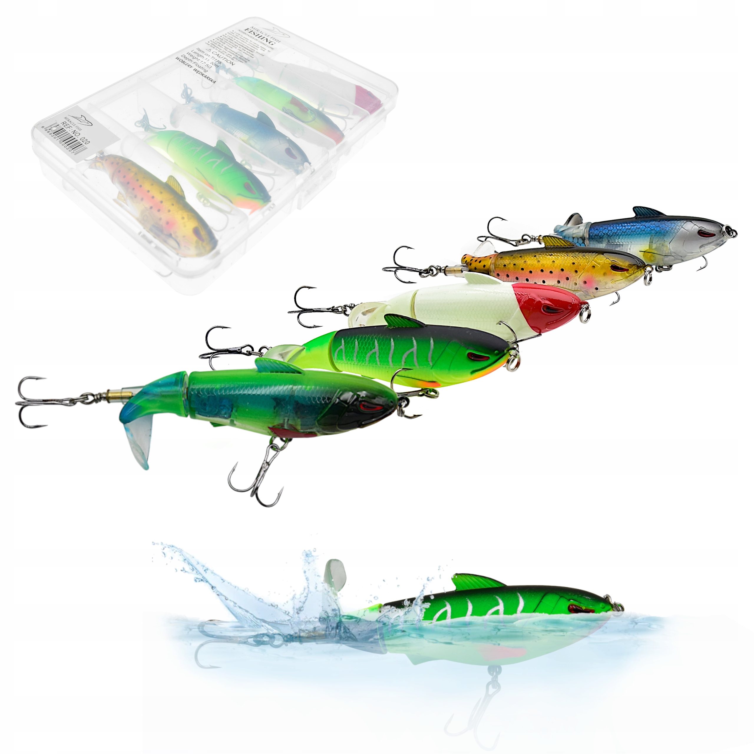 Zestaw 5 x WOBLER na Szczupaka obrot ogon Pudełko