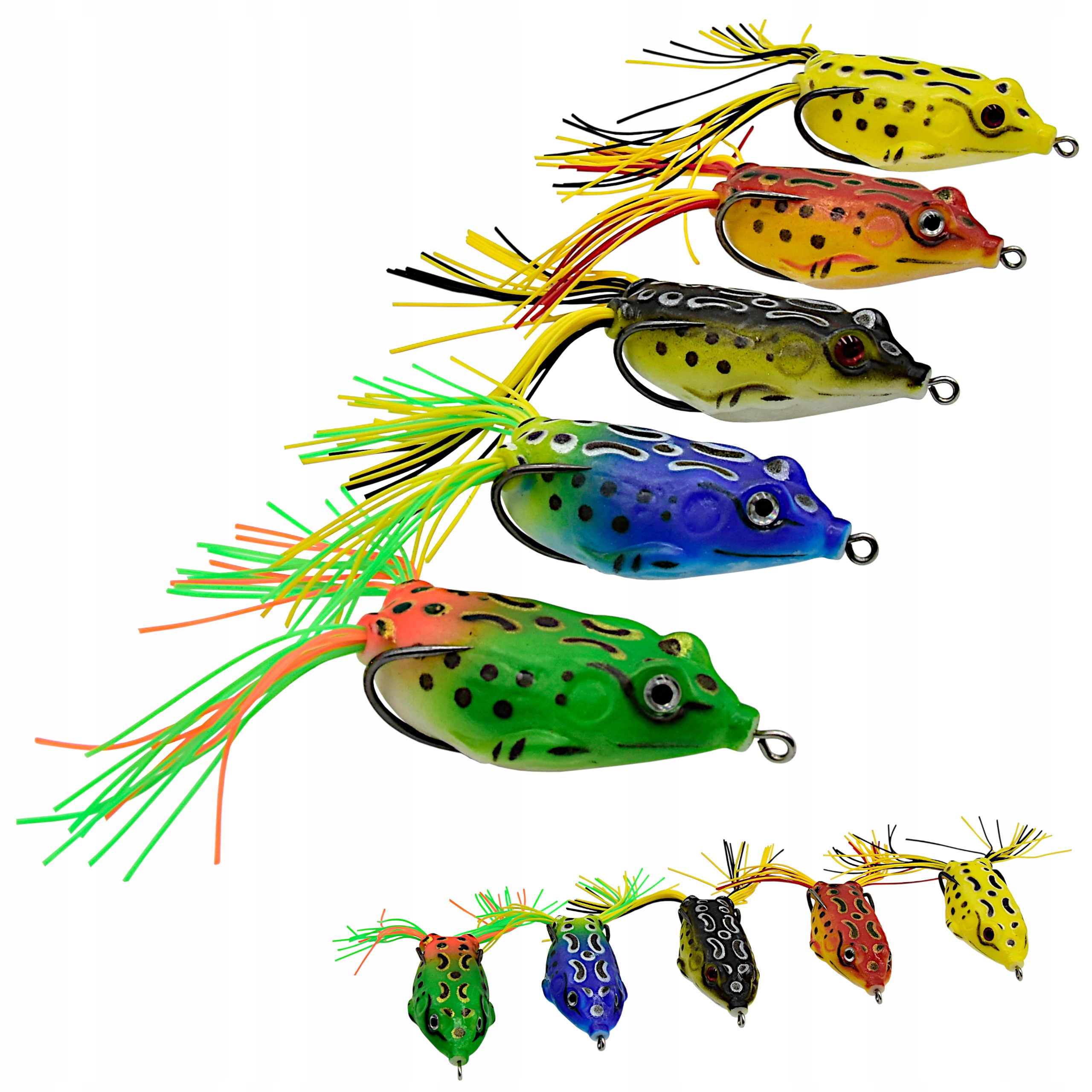 Imitacje Żab o bardzo realistycznym kształcie, puste w środku uzbrojone w podwójną, bardzo ostrą kotwicę oraz intensywnie pracujące, sylikonowe chwosty udające nogi. Jeśli masz mega zarośnięte miejscówki, w których wydaje Ci się, że nie ma już szans na dotarcie do potencjalej zdobyczy bo klasyczna guma i wobler nie dają rady - to nie mogłeś lepiej trafić!!!