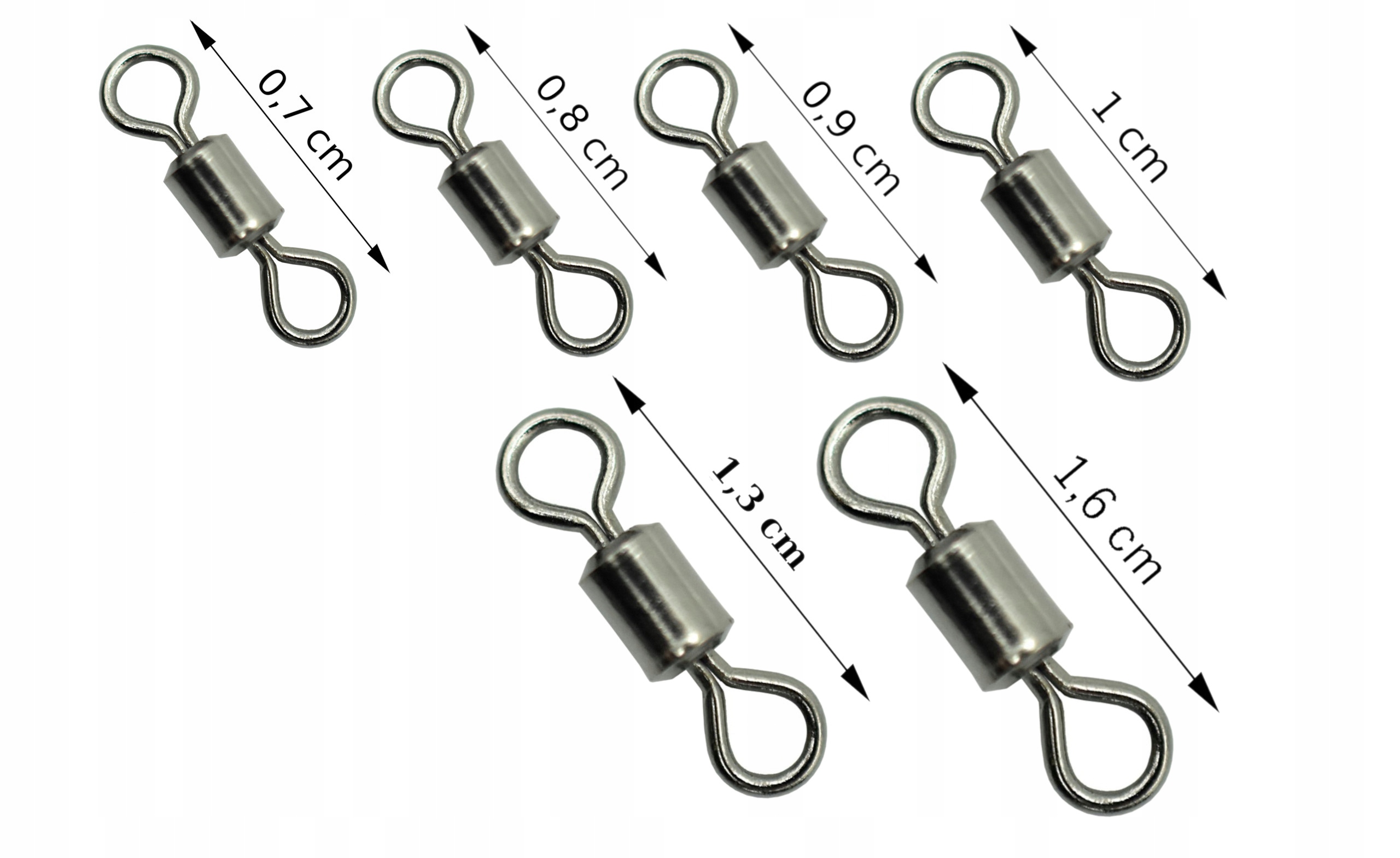 ✅ Krętliki o różnych długościach, od 0,7 do 1,6 cm, dzięki czemu znajdziesz odpowiedni rozmiar na każdą wyprawę wędkarską