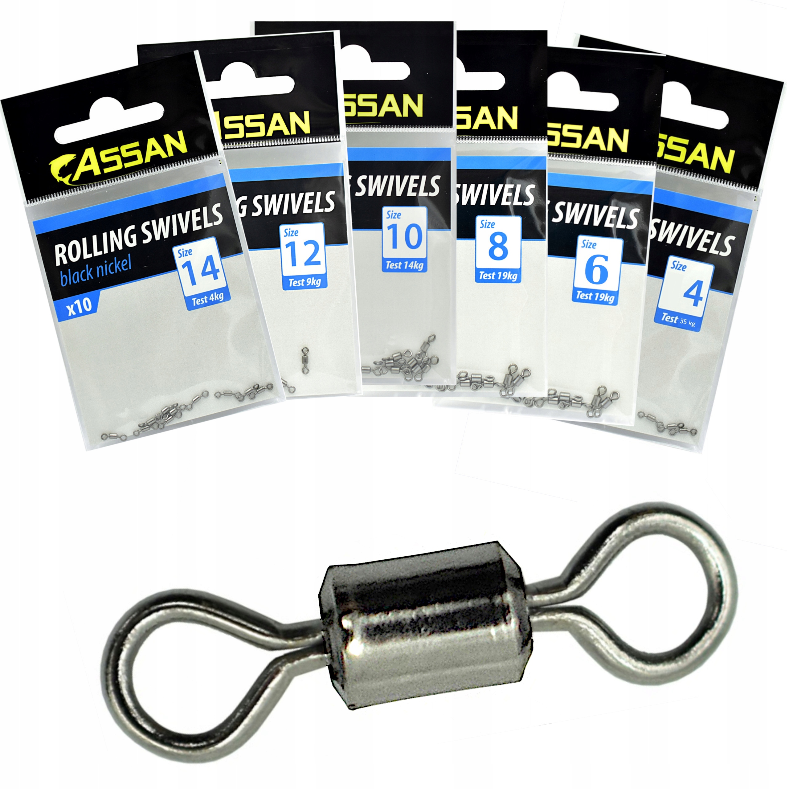 Zestaw 60 krętlików Wędkarskich ASSAN po 10 sztuk z każdego rozmiaru