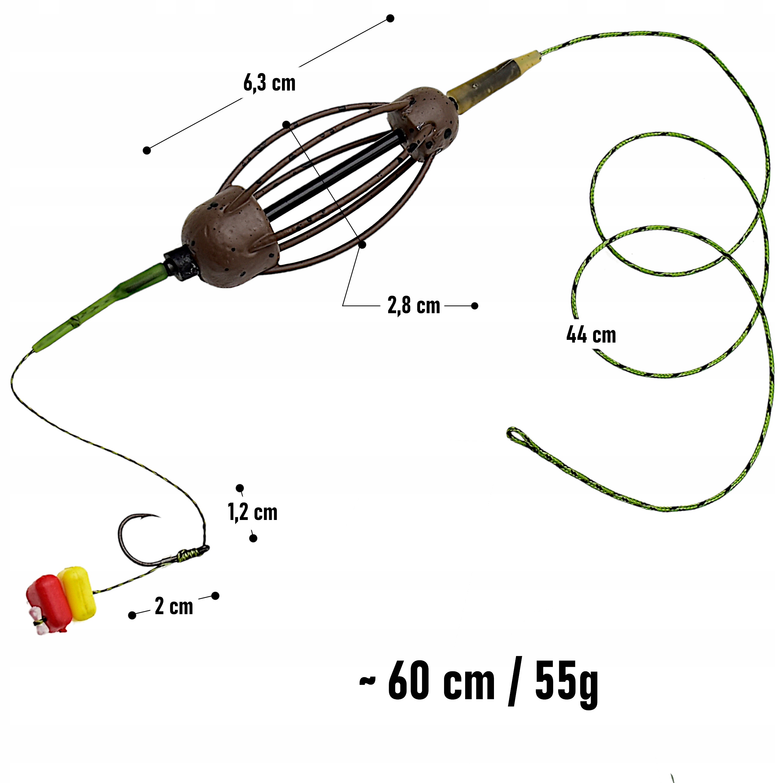 Gotowy zestaw gruntowy ze sprężyną 55g, leadcore i przyponem z włosem – ~60 cm