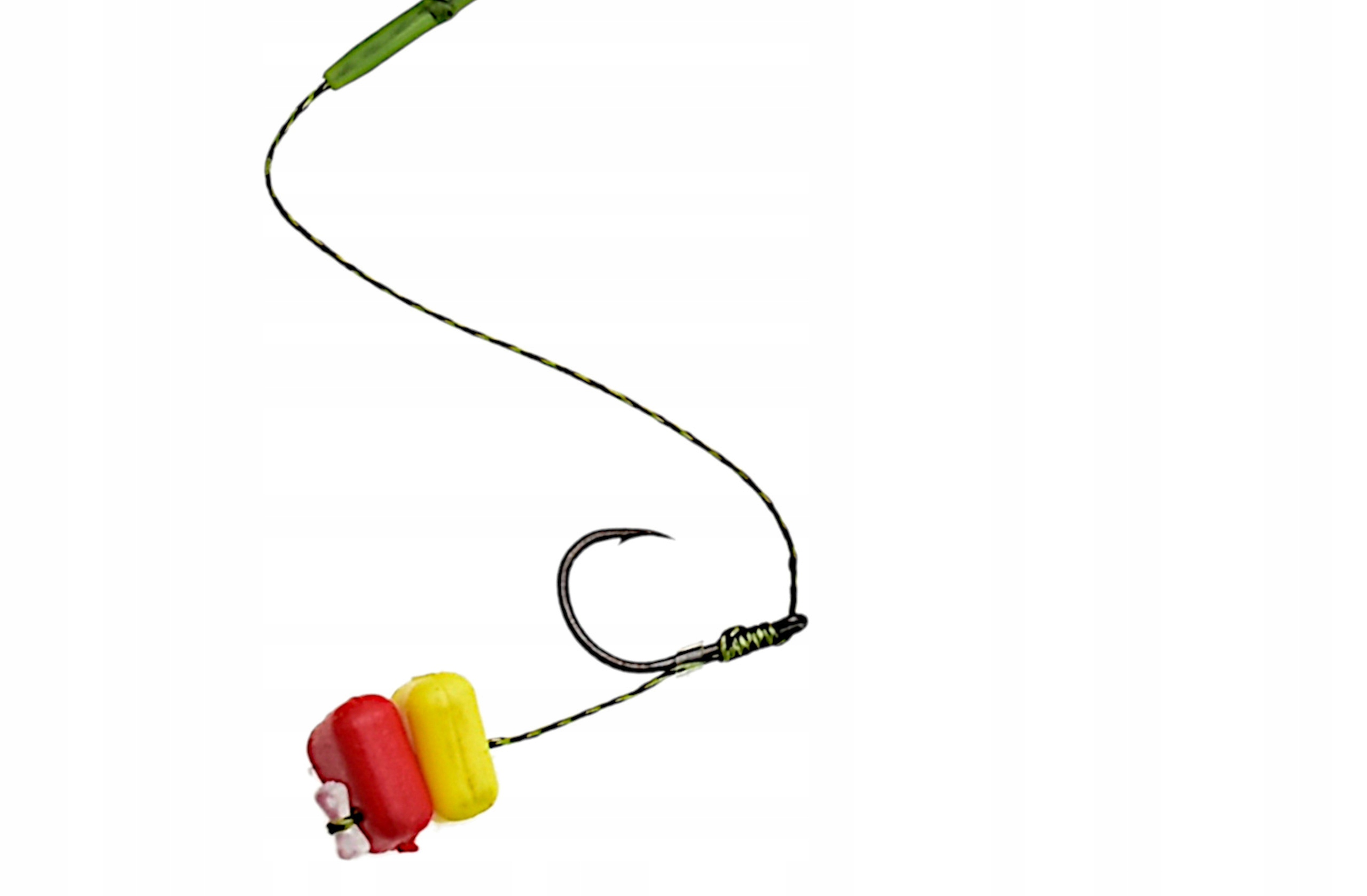 Zestaw zakończony jest, ostrym haczykiem z zadziorem, na przyponie włosowym z mocnej plecionki - na włos założona jest przynęta 2 x ziarno kukurydzy pop up