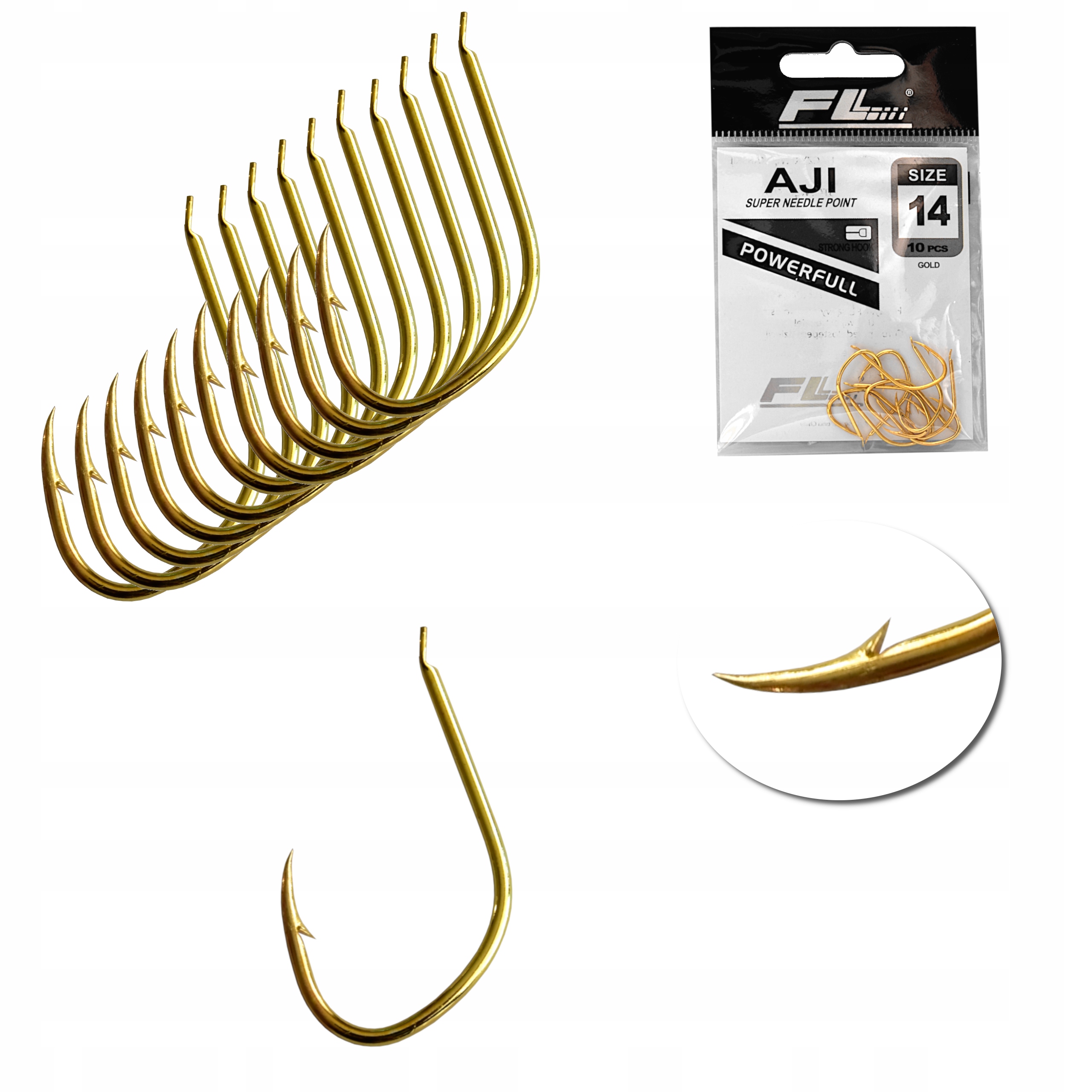 Zestaw Haczyków Haczyki FL AJI nr 14 złote- 10 szt
