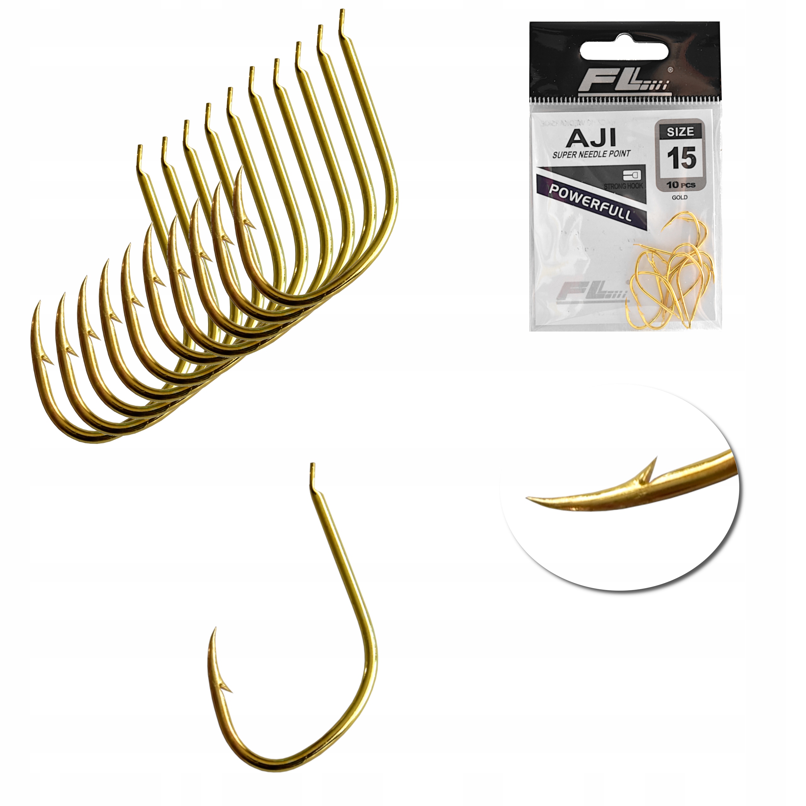 Zestaw Haczyków Haczyki FL AJI nr 15 złote- 10 szt