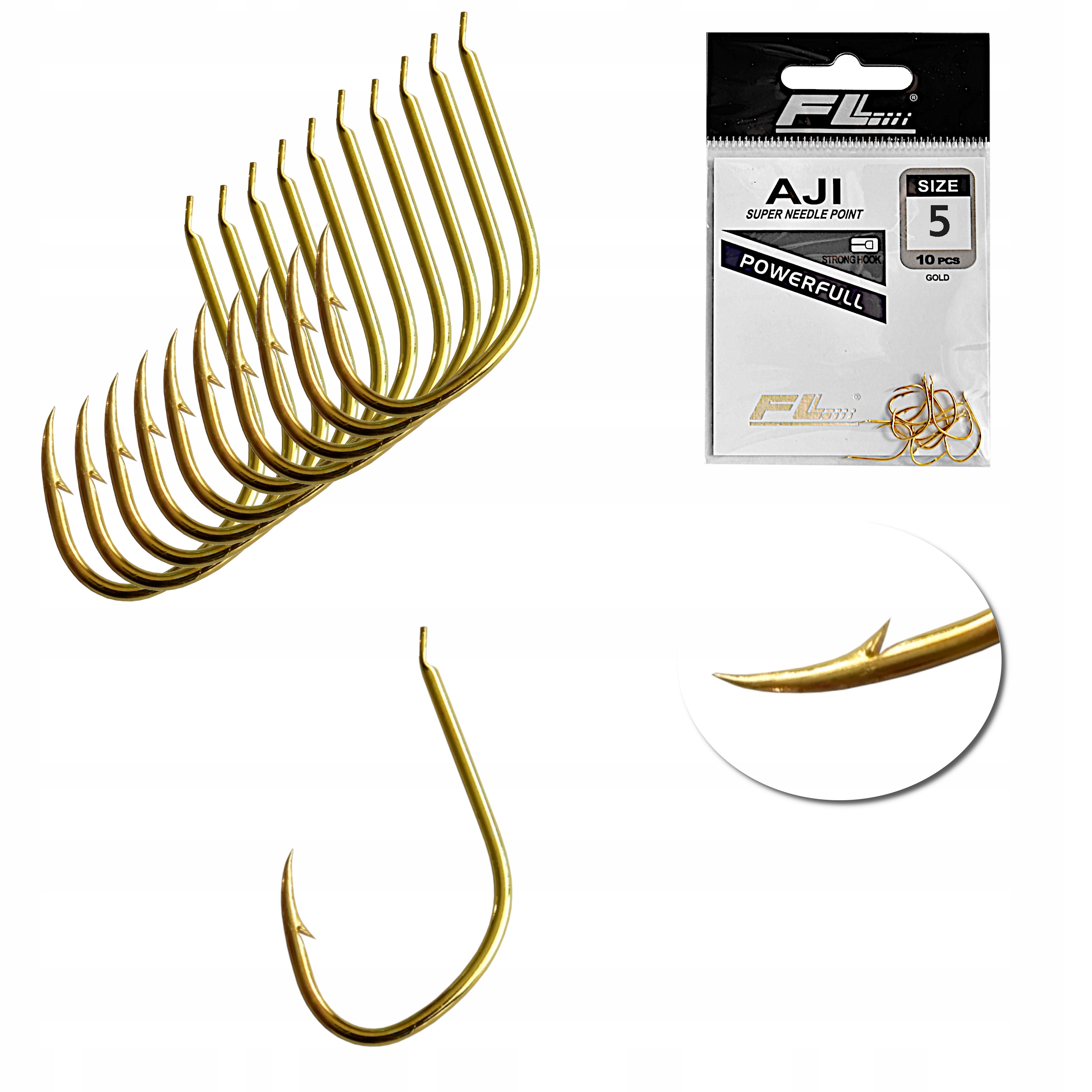 Zestaw Haczyków Haczyki FL AJI Nr 5 złote- 10 szt