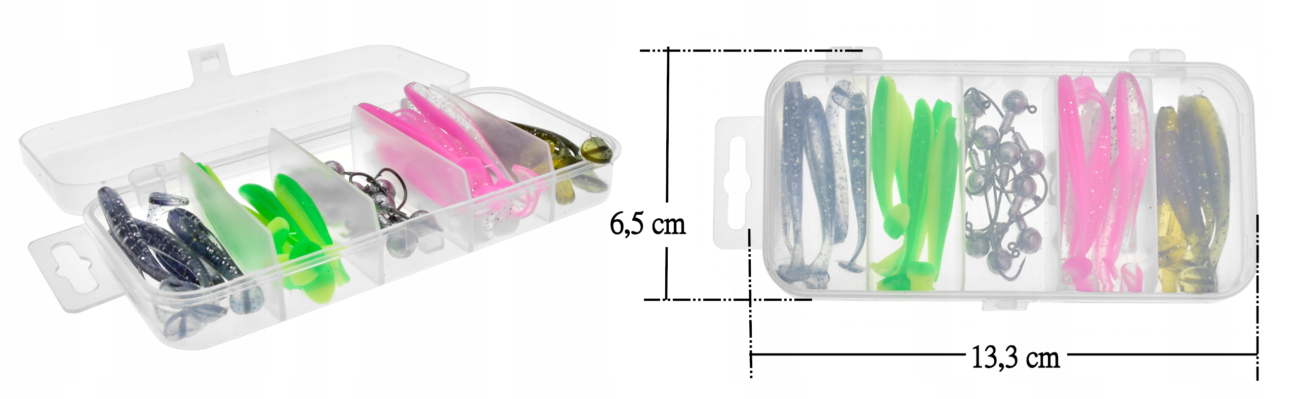 25 gum Ripper + 10 główek jigowych + pudełko