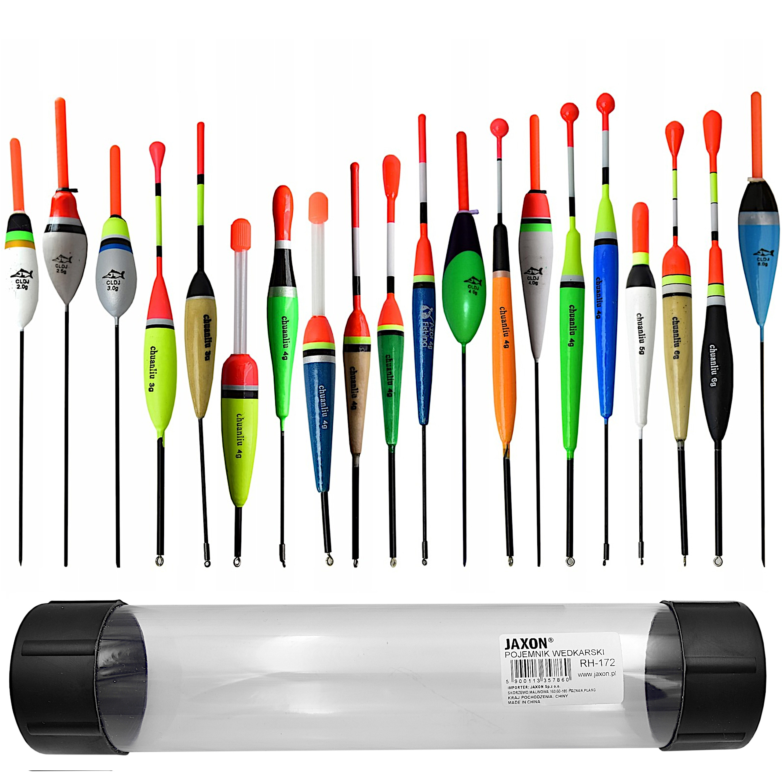 ZESTAW SPŁAWIKÓW 20szt Jezioro Rzeka + Tuba Jaxon
