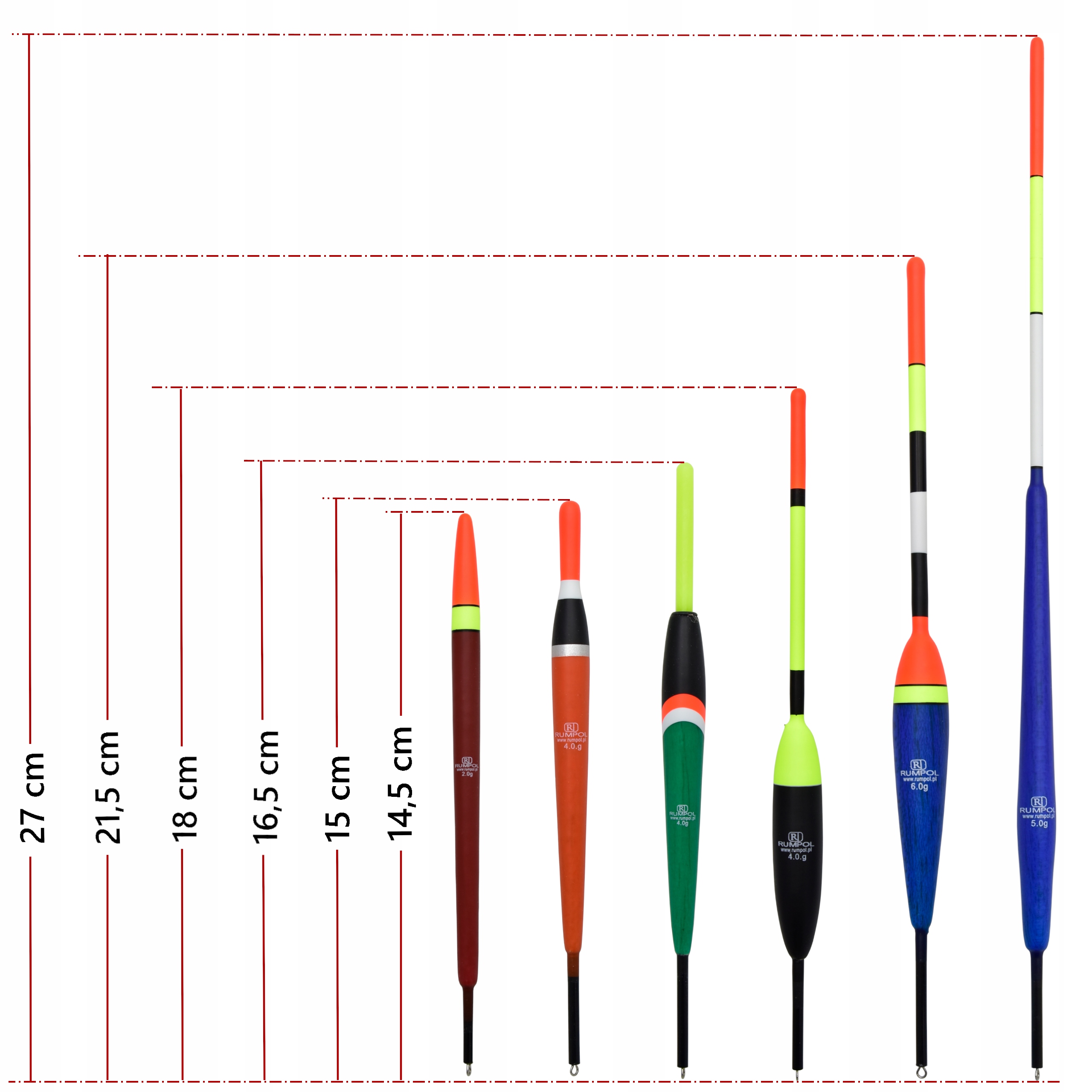 Wymiary spławików mieszczą się w przedziale od 14,5cm - 27 cm