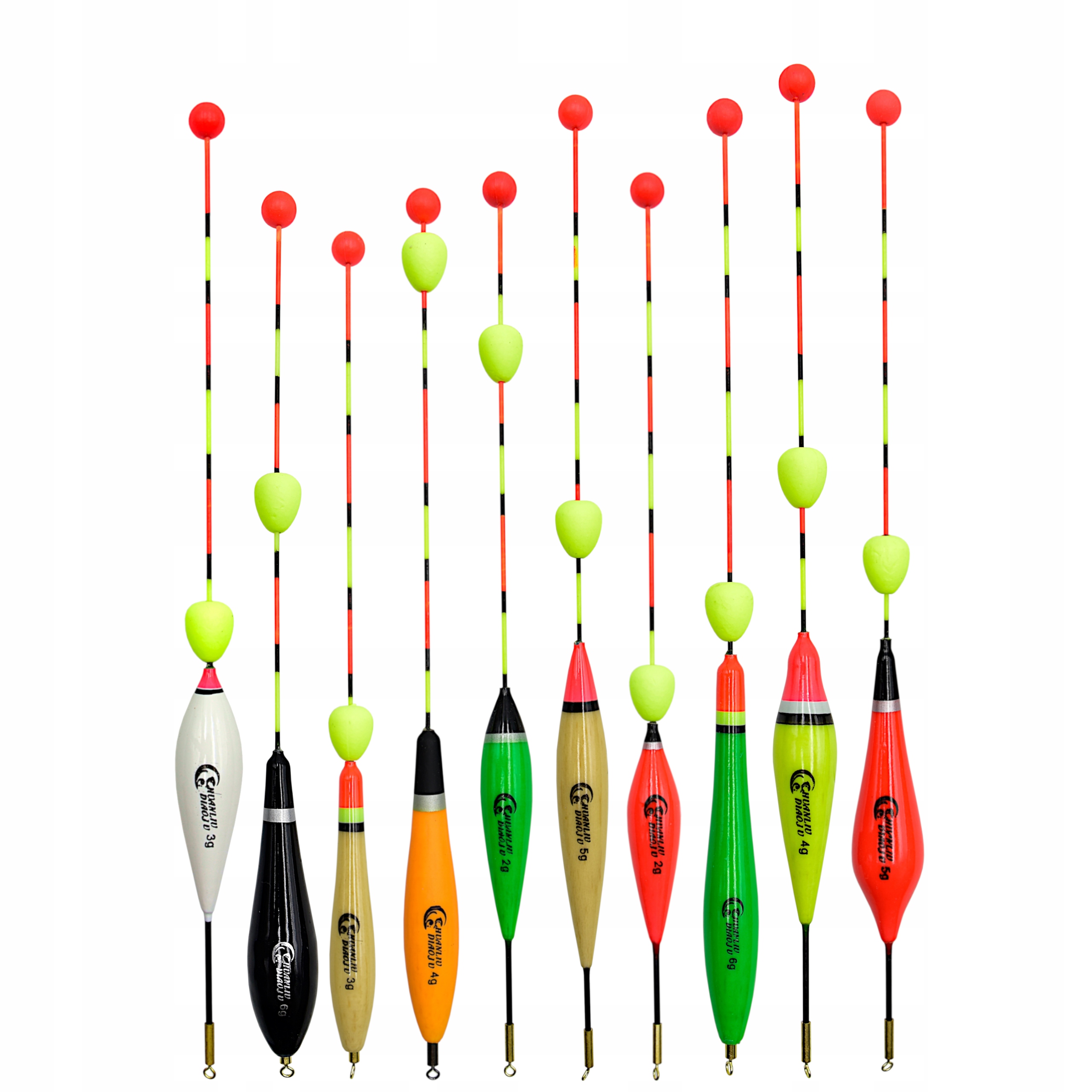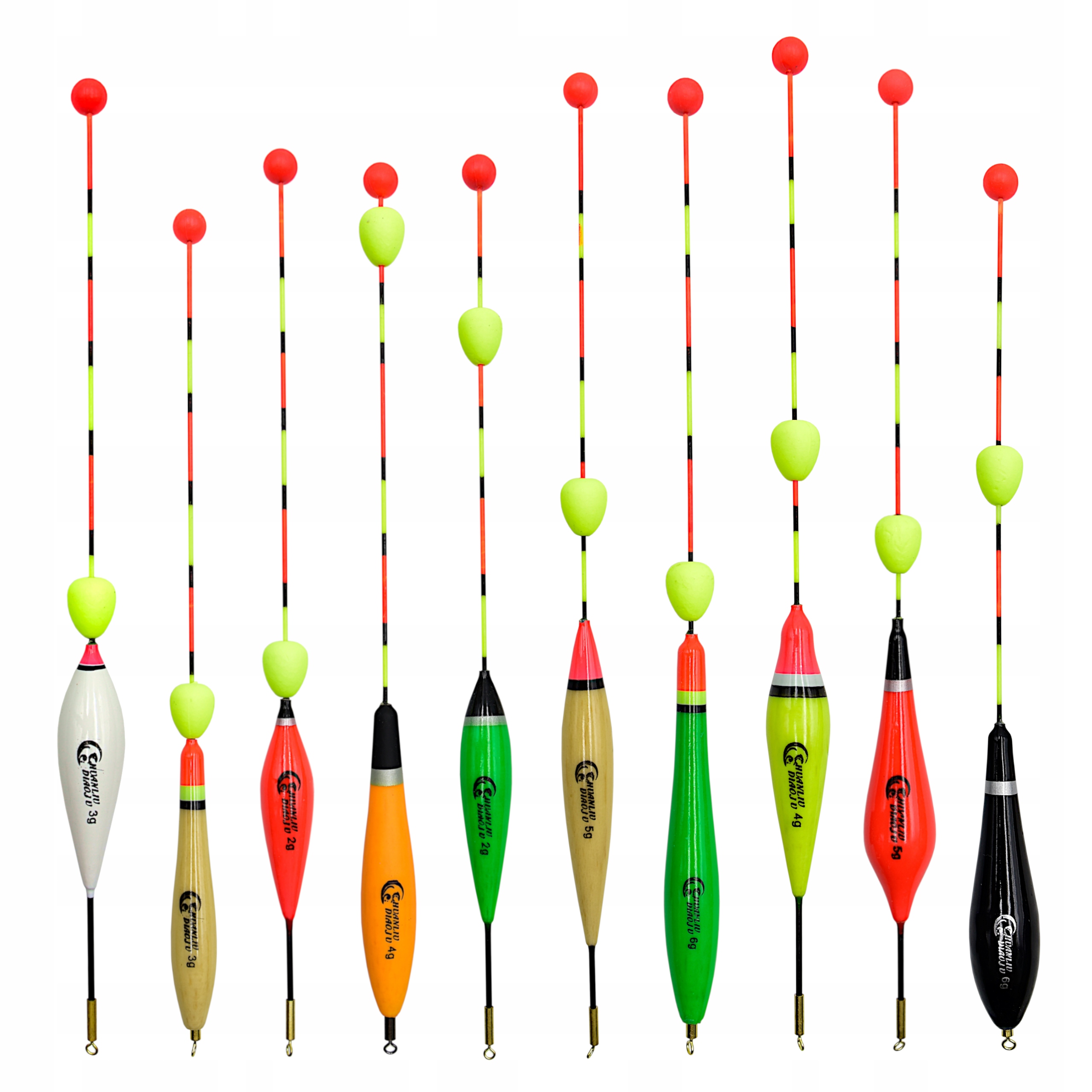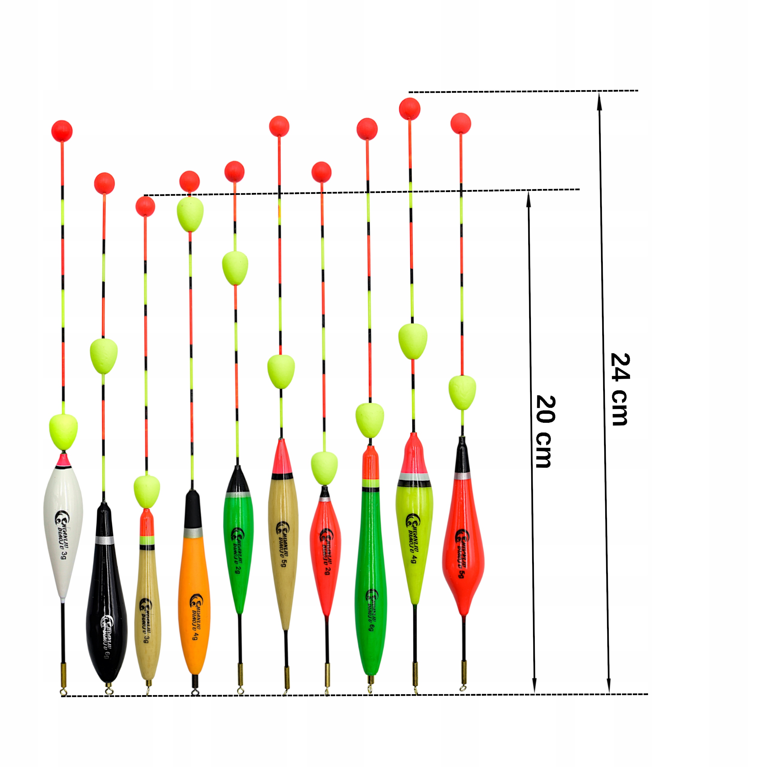 ZESTAW SPŁAWIKÓW z BOJKĄ ŚLIZGOWĄ góra-dół - 10 szt